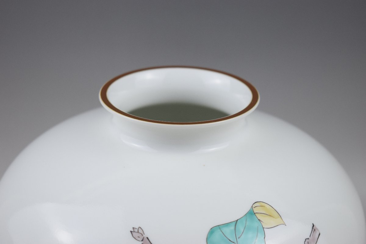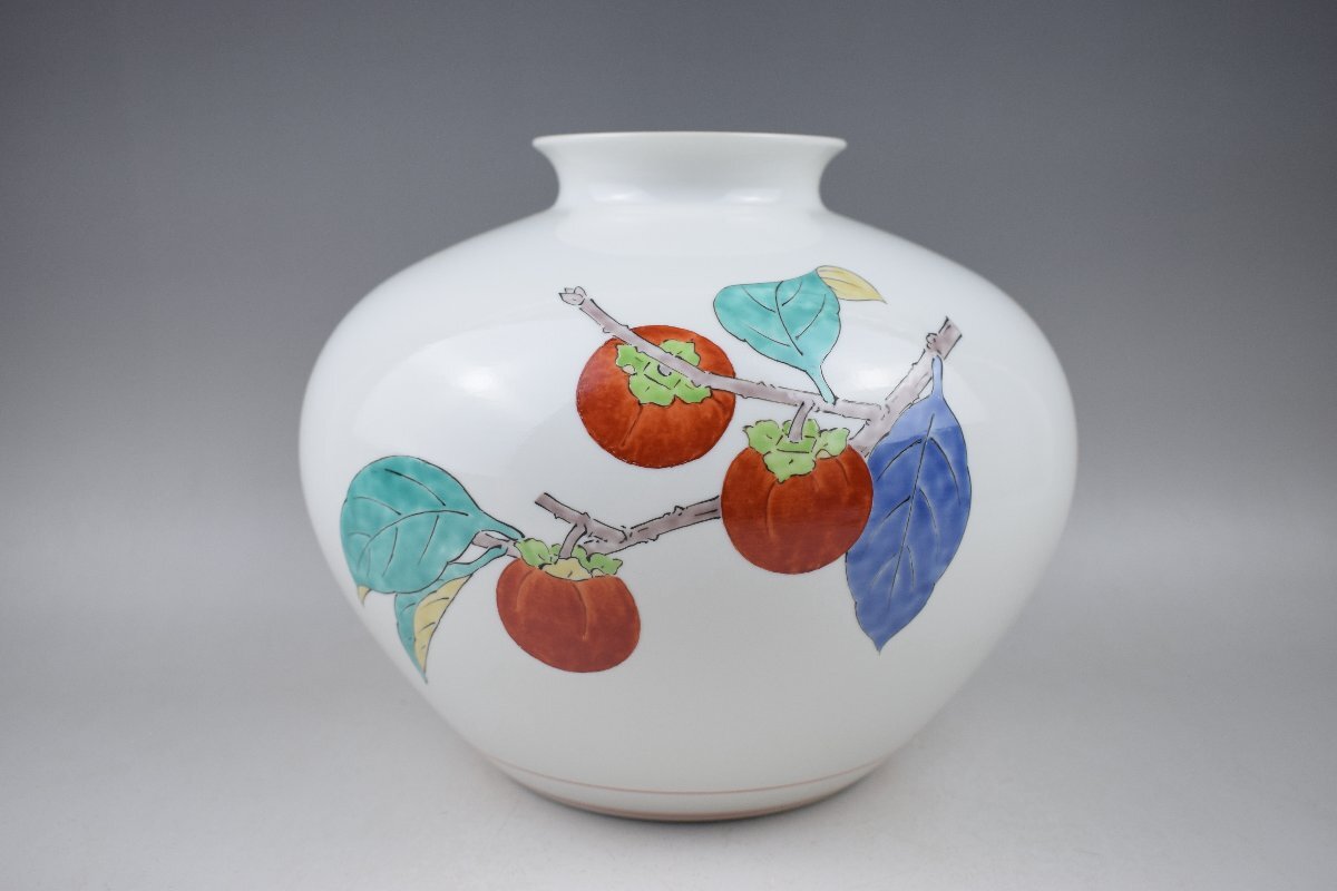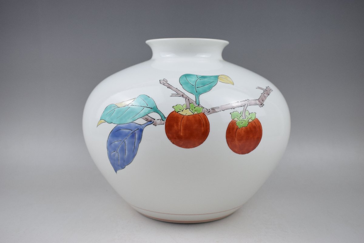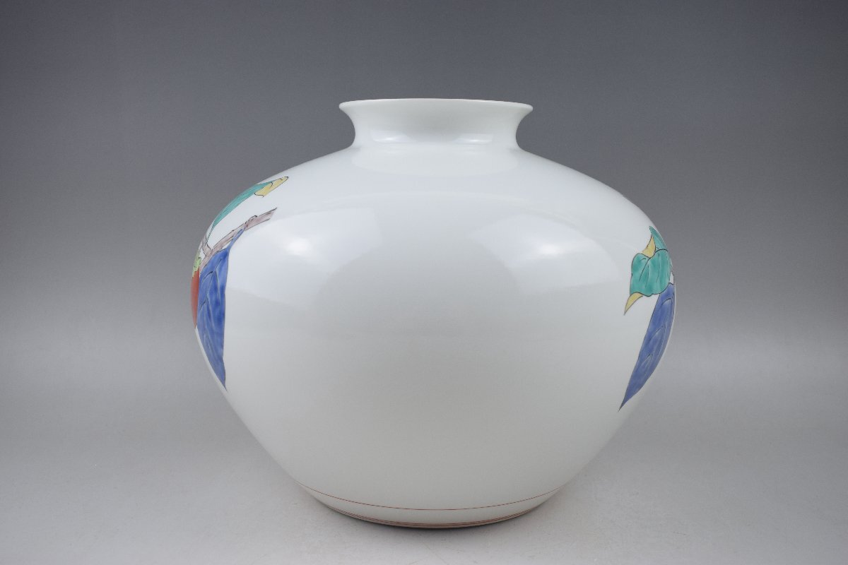 【人間国宝 十四代酒井田柿右衛門 本人作 濁手柿文花瓶 共箱 真作保証 】