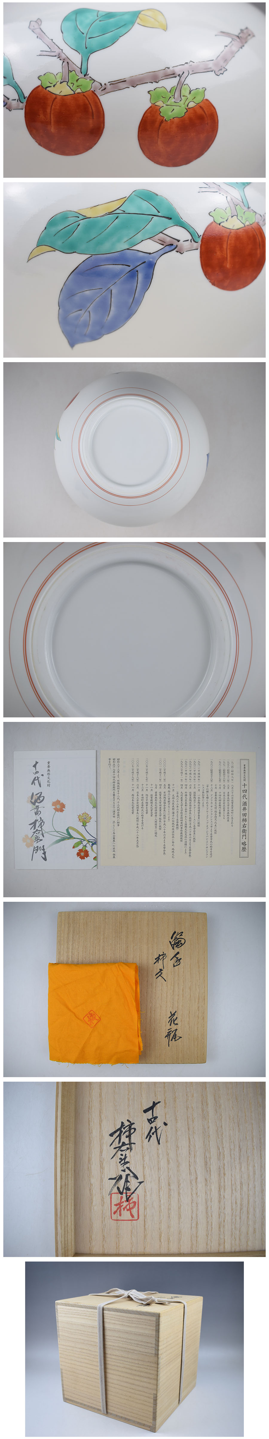 J575 人間国宝 十四代酒井田柿右衛門 本人作 濁手柿文花瓶 共箱 真作保証