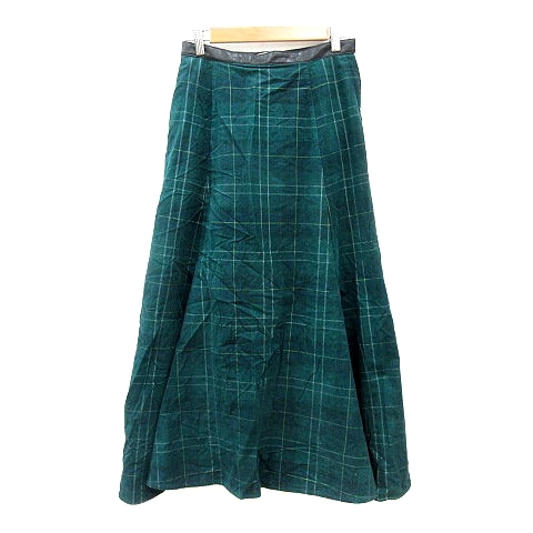 マウジー MOUSSY フレアスカート マキシ ロング チェック コーデュロイ 2 M 緑 グリーン /MN レディース