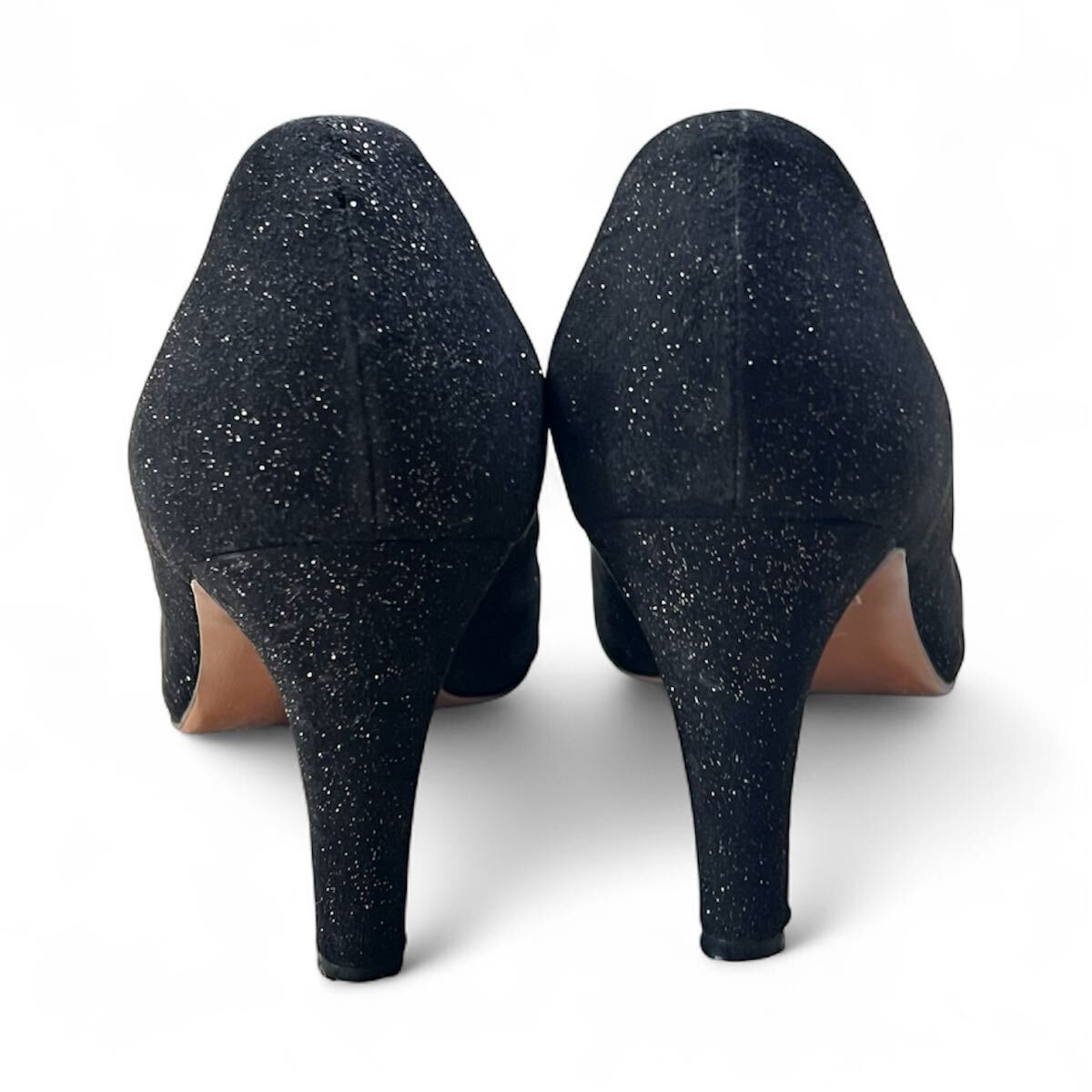 ■ 特徴: 流れるようなサイドライン,すっきりシェイプされたヒールが織り成す,女性らしく美しいフォルムが魅力のスクエアトウパンプスです。浅めのカッティングが甲を広く見せてくれるので,脚長効果が期待できます。黒に,シルバー,カラフルなラメが入った綺麗なツイード生地です。品番:2121日本製