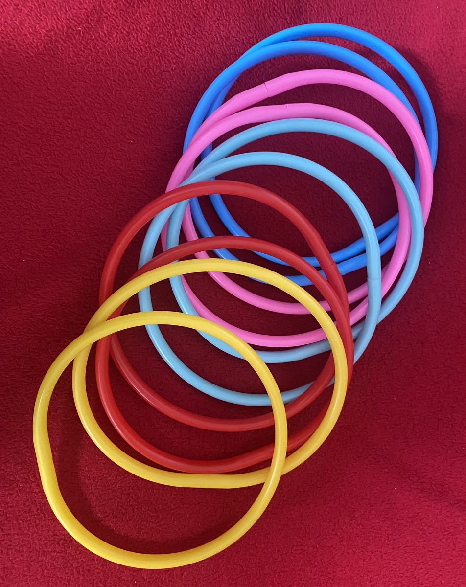 みんなが集まるイベント 町内会や子供会などで 輪投げゲームを企画する時の必須アイテム 直径は内径 約150mm 外径 約170mm やや大きめのサイズですね パステルカラーが綺麗な材質もソフトタイプの輪です 小さなお子様でもチャレンジ出来るサイズです オモチャでもお菓子でも 並べておいて すぐ遊べます 楽しく輪投げゲームでパフォーマンス 3枚目の掲載写真のように景品をゲットします 遊び方の参考例として掲載させていただきました お値打ちかかくでお届け致します イベントお助けグッズ’縁日ゲーム用 縁日に必須’輪投げゲームの輪(大)/10本 1セットでの出品です 縁日、夜店、イベントの定番”輪投げゲームの必須用品です やや大きめのサイズで 小さなお子さんでも上手く投げて景品をゲットしやすいです 楽しく輪投げゲームのはじまりです 材質はソフトプラスティック製で安全です カラーはパステルカラー イエロー、レッド、ピンク、ライトグリーン、ライトブルー 5色アソートで10本 1セットでお届け致します 新品 未使用 定型外配送にてお届け致します 定形外配送料¥450にてお届けいたします 定型外配送はに製品配送保障がございませんが 出品させていただきました商品に限りましてはプチプチなどに包んで大切に お届けいたします ご安心くださいませ。お祭りや様々なイベントに楽しさを盛り上げる推しのイベントグッズが出品されています まとめて取引にも対応しています 下記出品ページを ご参照下さいませ タイトル「イベントにイチ推し!輪投げゲームを楽しむ!」でございます 尚 この商品には希望落札価格が設定されております。出品商品につきまして わからない事のある場合 お気軽にご質問欄にて ご投稿下さい 迅速に ご返答差し上げます*お取り引きに関しましての お願いです オークションのルールに従い 宜しくお願い致します*』
