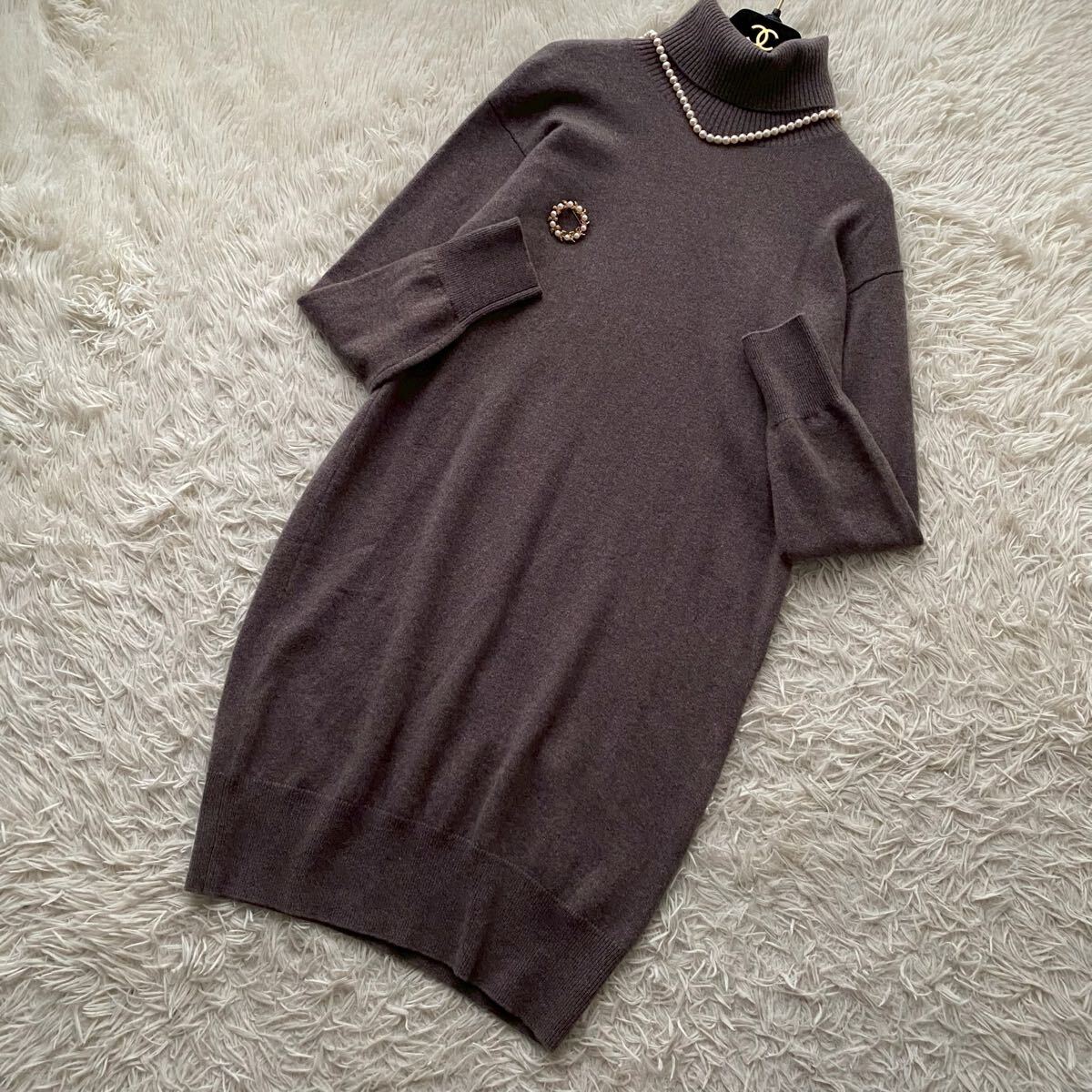 最高級カシミヤ100% ハイゲージニット ハイネックリブニットワンピース