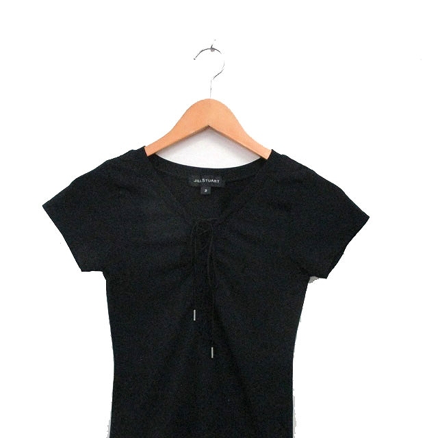 ジルスチュアート JILL STUART ロンパース カットソー 半袖 レースアップ シンプル 2 ブラック 黒 /KT37 レディース