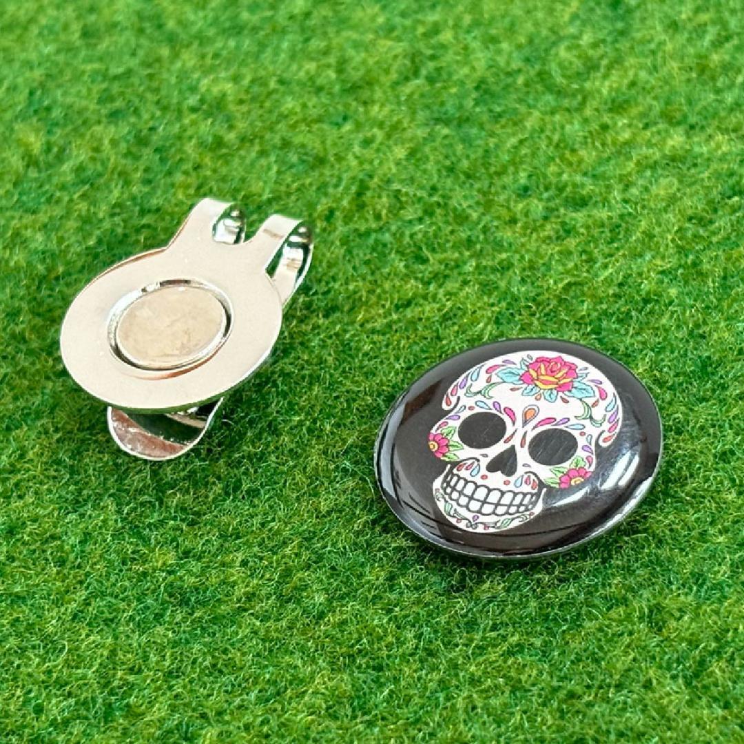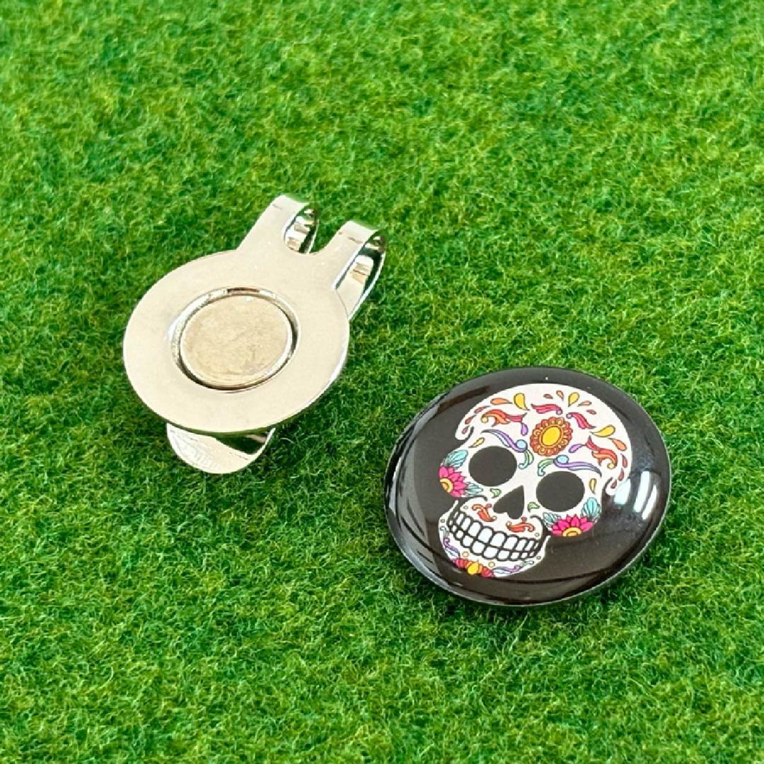 ゴルフラウンドをより楽しく演出する、おしゃれなスカルデザインのゴルフマーカーイラスト違いの2個セットです。