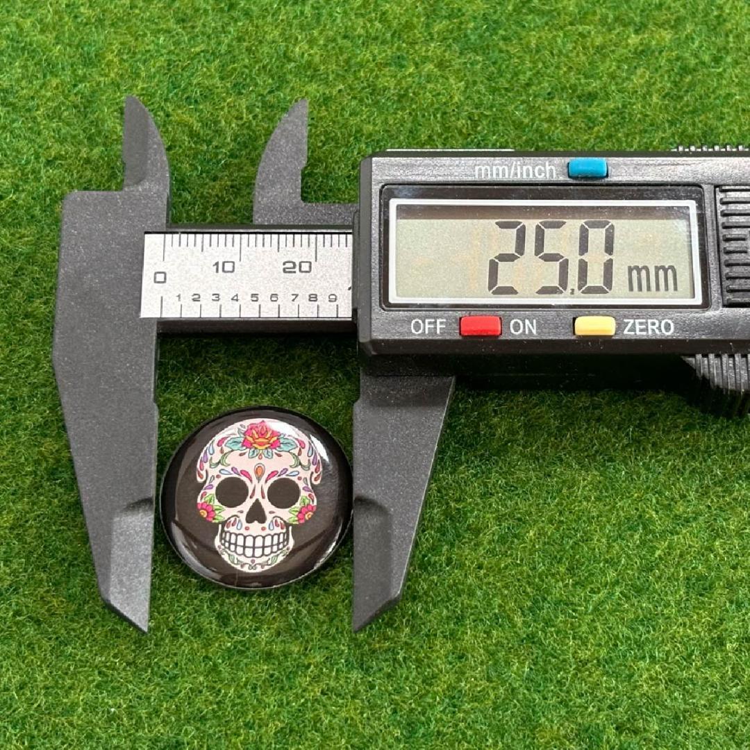 カラフルなドクロモチーフが視認性を高め、グリーン上でも見つけやすいデザインになっています。
