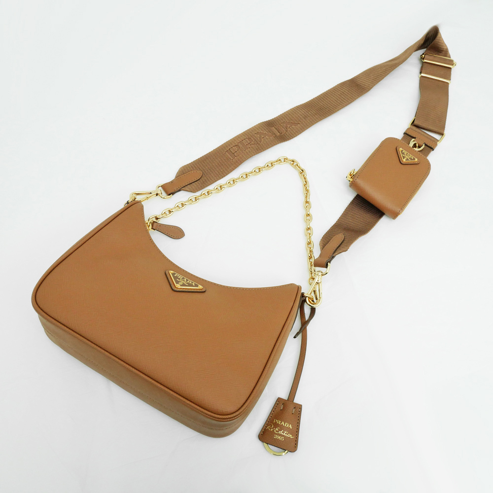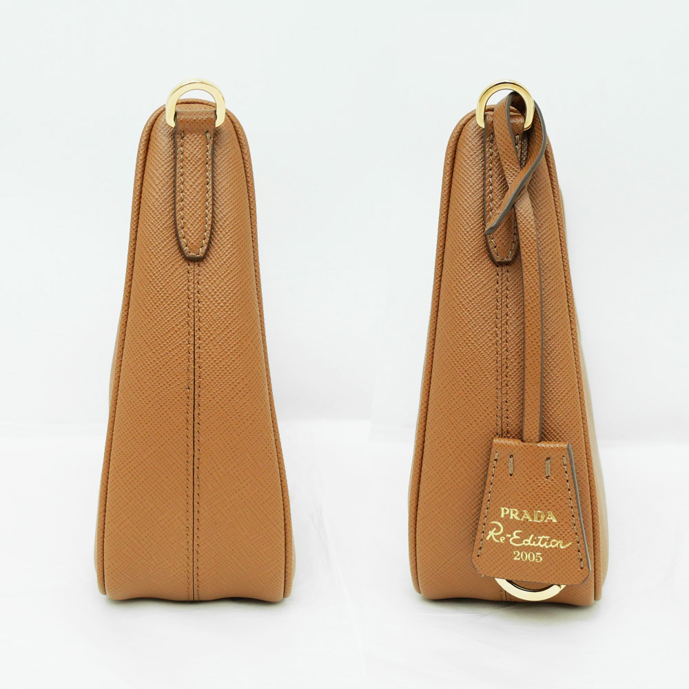 【名東】プラダ Re-Edition サフィアーノ レザー ショルダーバッグ ハンド 1BH204 キャメル レディース その他