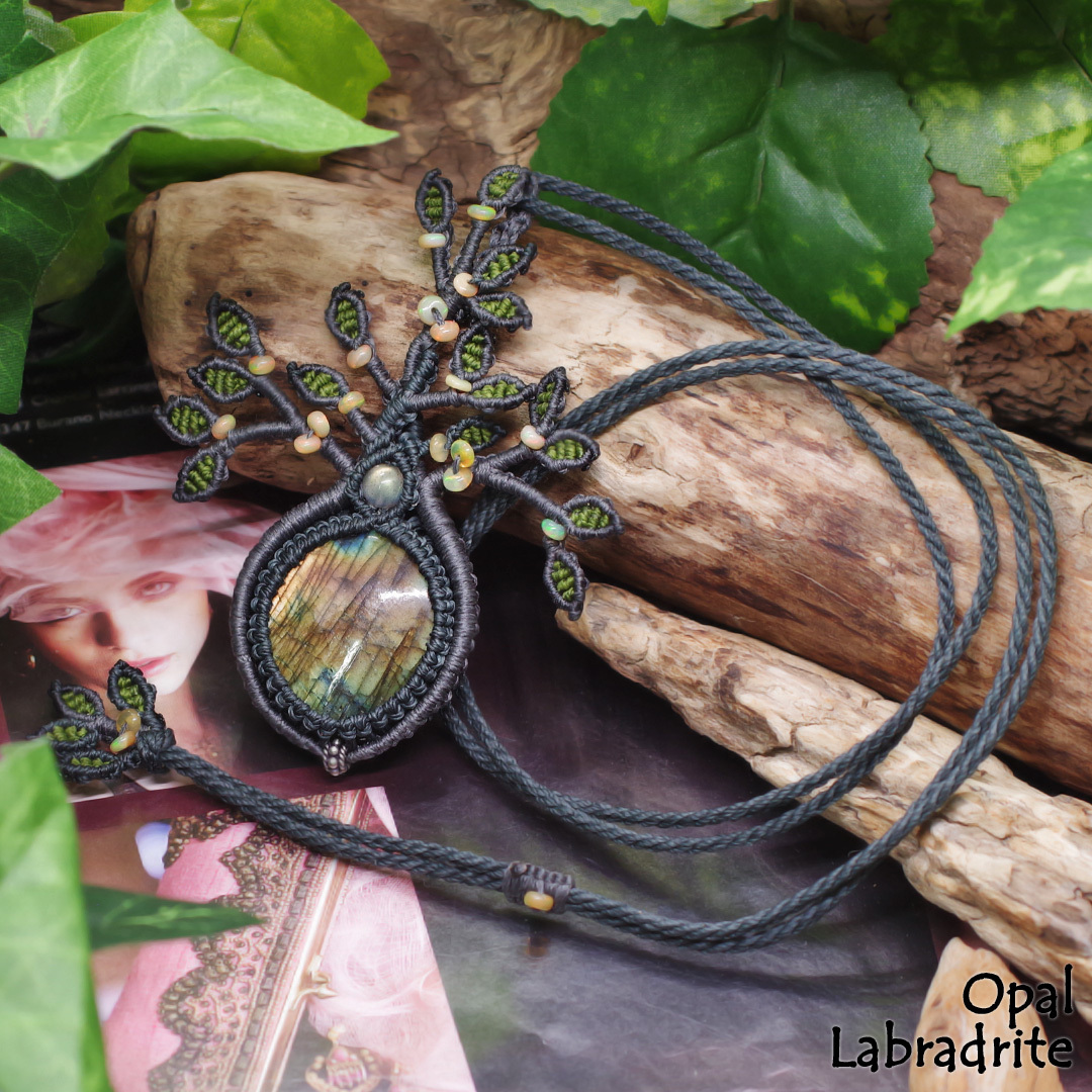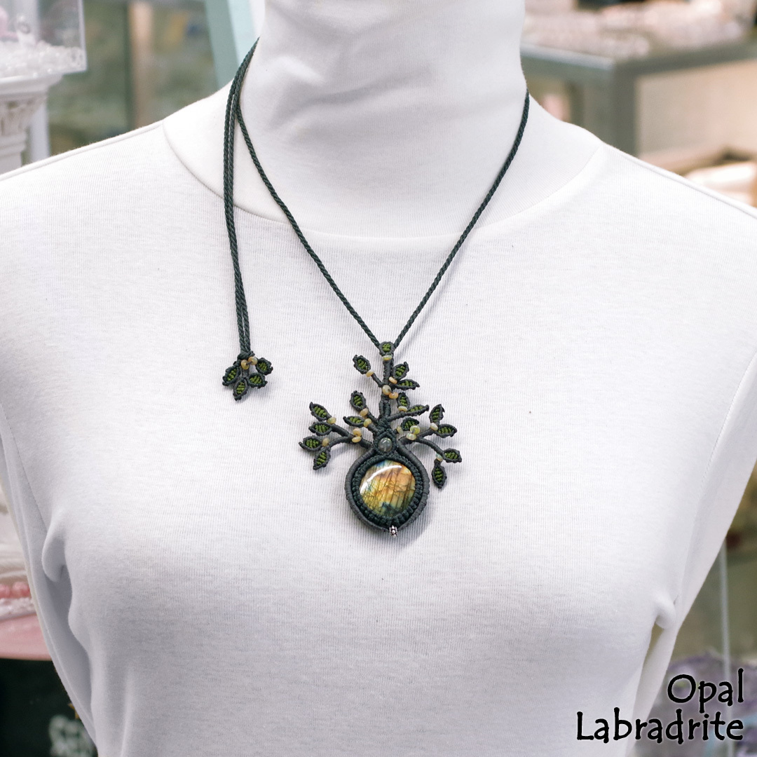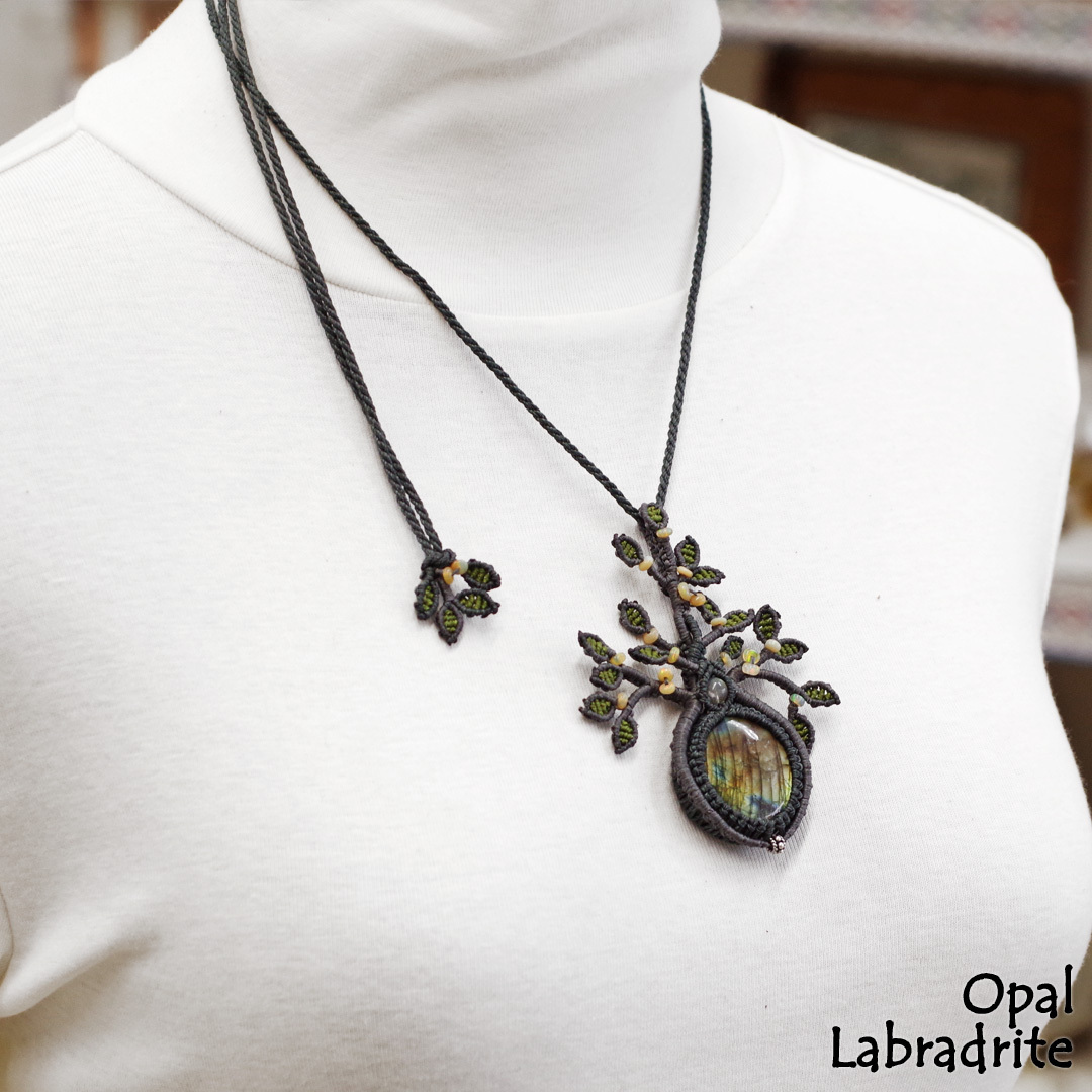 美麗・『ラブラドライト』『プレシャスオパール』生命の樹マクラメ編トップネックレス