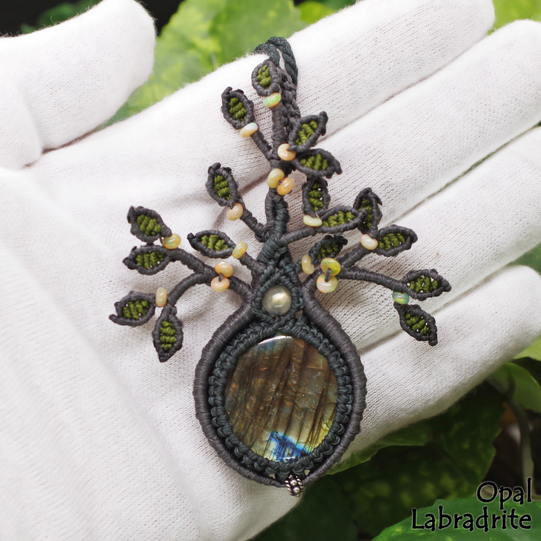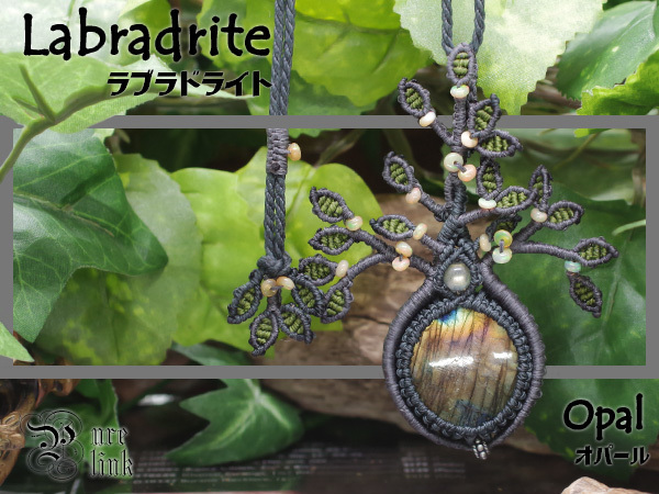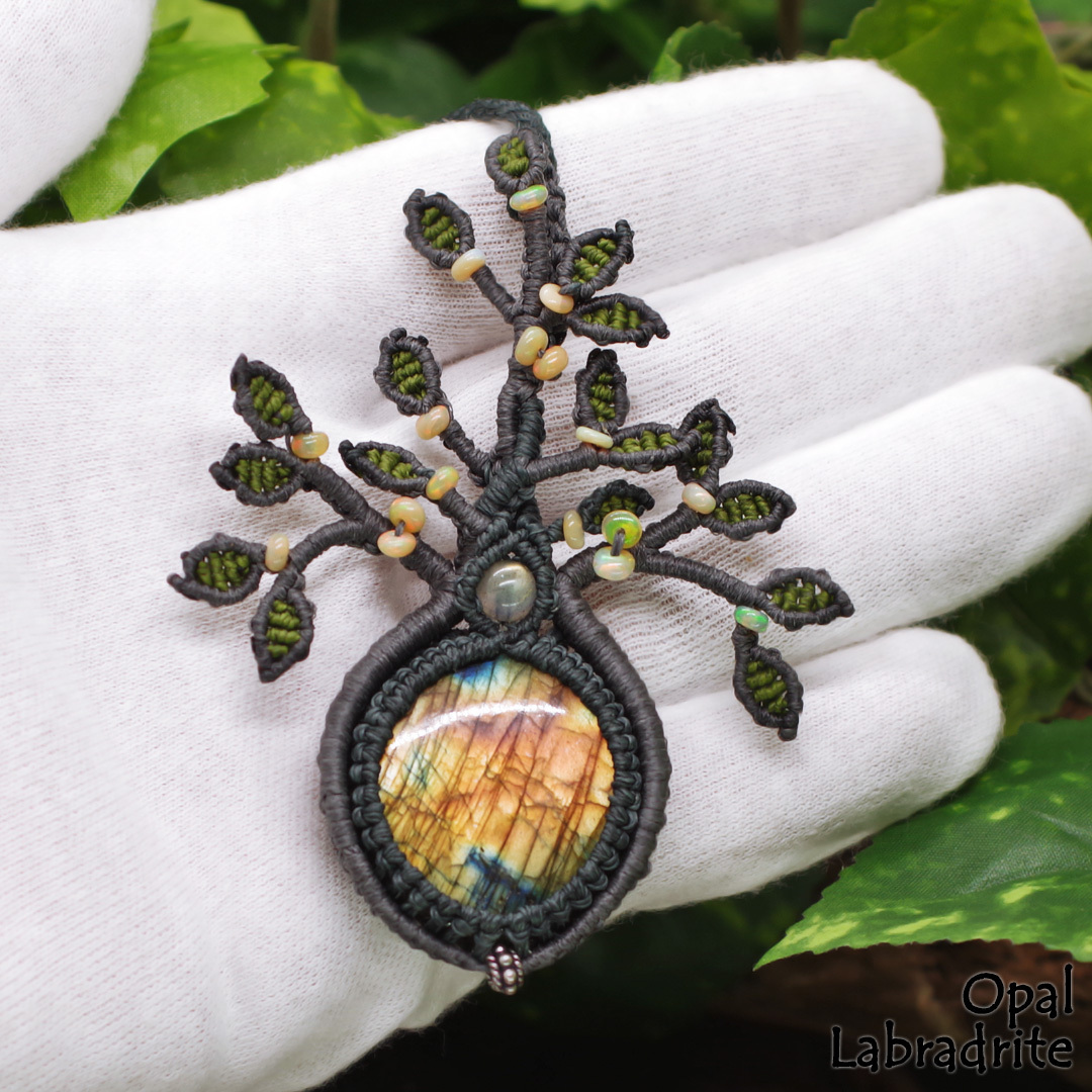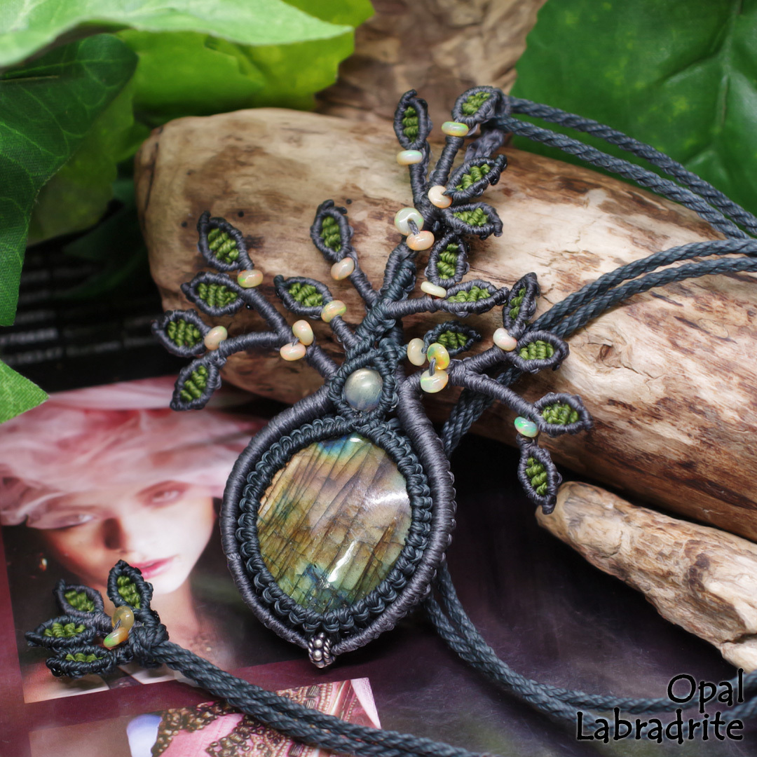 美麗・『ラブラドライト』『プレシャスオパール』生命の樹マクラメ編トップネックレス