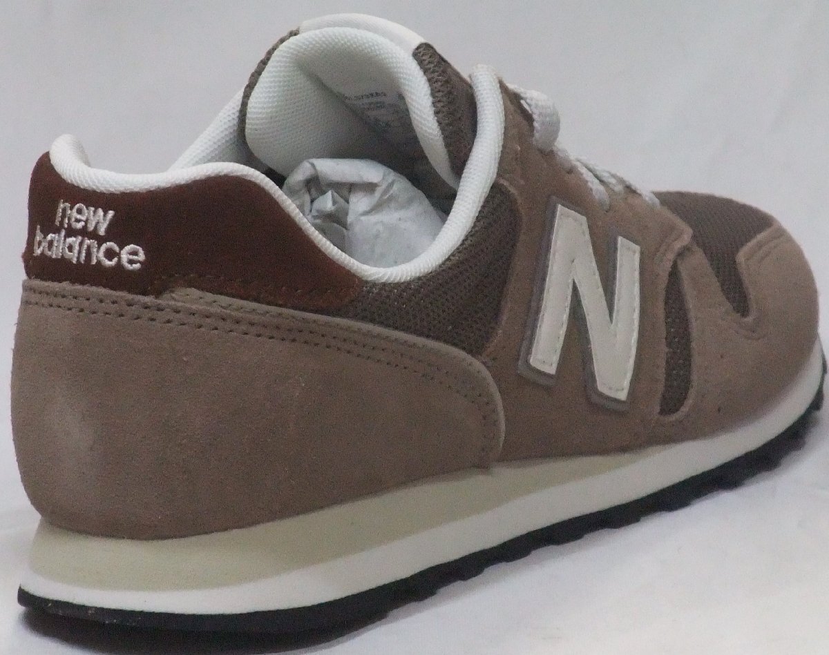 マッシュルームブラウンカラーのスエード/メッシュアッパーに、ホワイトのNロゴとヒールタブにダークブラウンを配したカラーリングです。