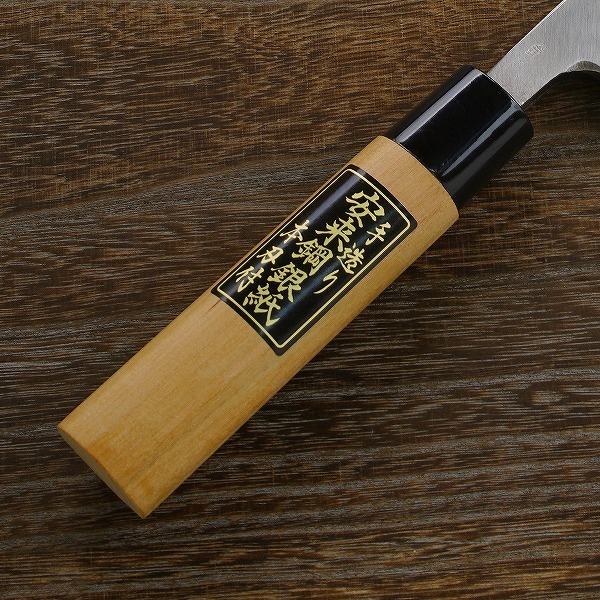 | 日立安来鋼(ハガネ)のステンレス系刃物鋼「銀三」を使用した、 切れ味良くお手入れ簡単な一般家庭用和包丁です。 | |