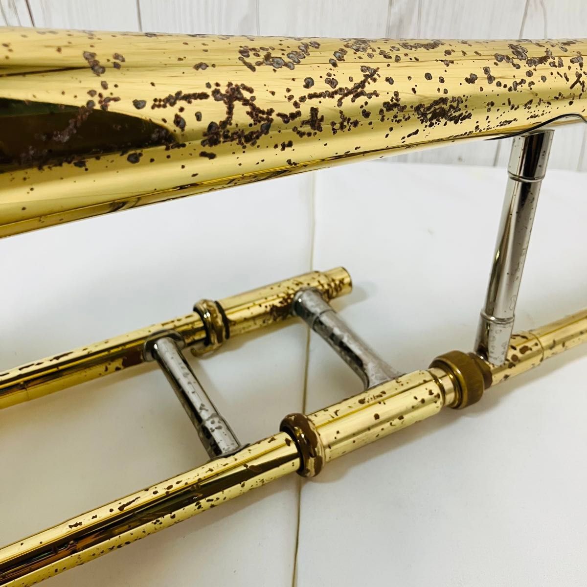 管体全体にラッカー剥がれやサビ、くすみなどがあります。ジャンク扱いです。