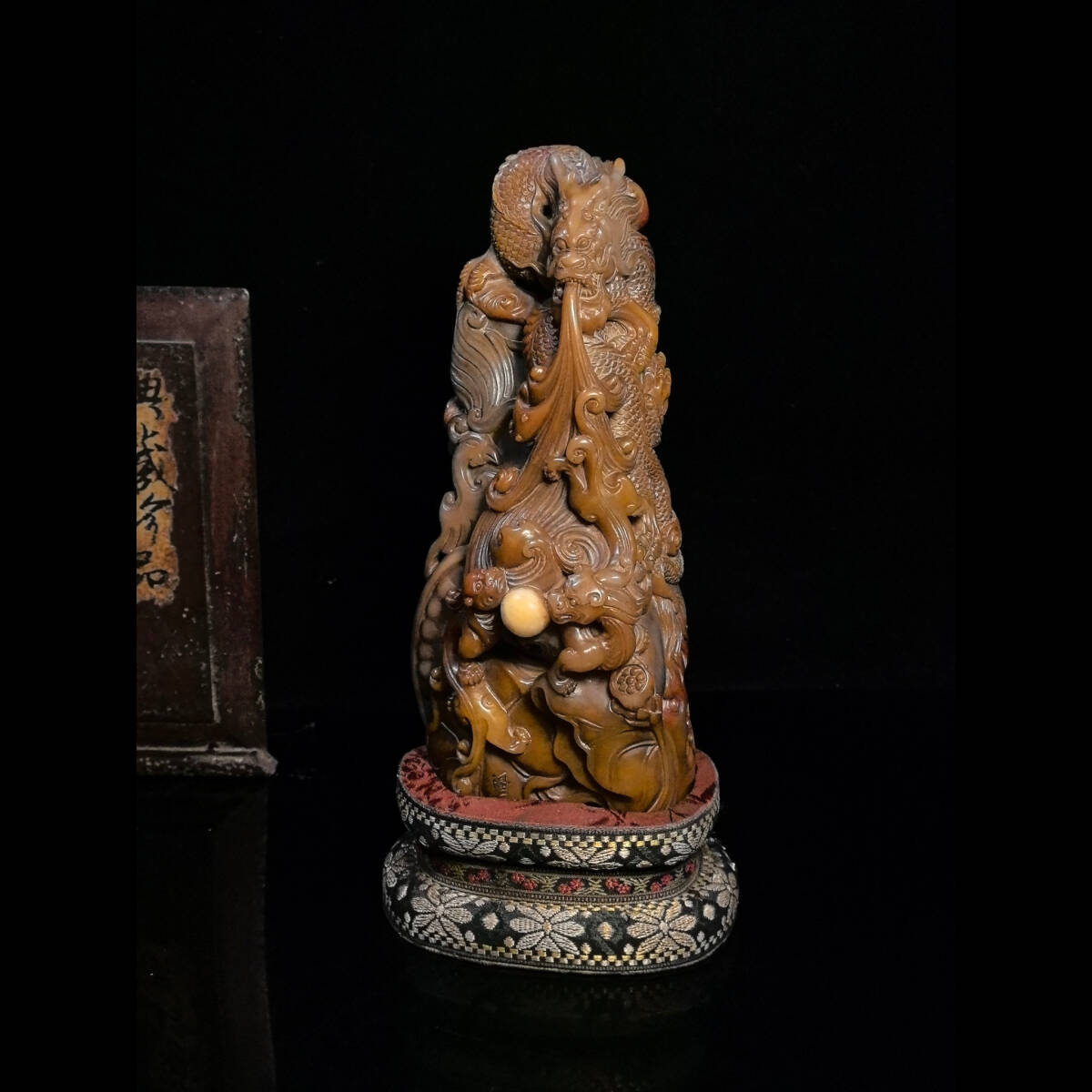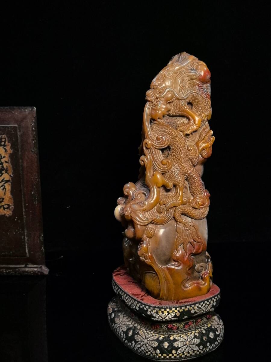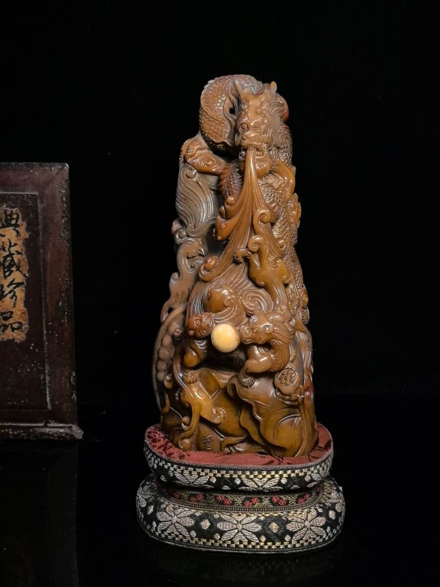9_ZZ8424【惠】人間国宝 和田玉 雕刻【寿山石五彩田黄祥竜戯珠】 中国古玩 中国骨董 伝世珍品 風水秘蔵 傳世家珍