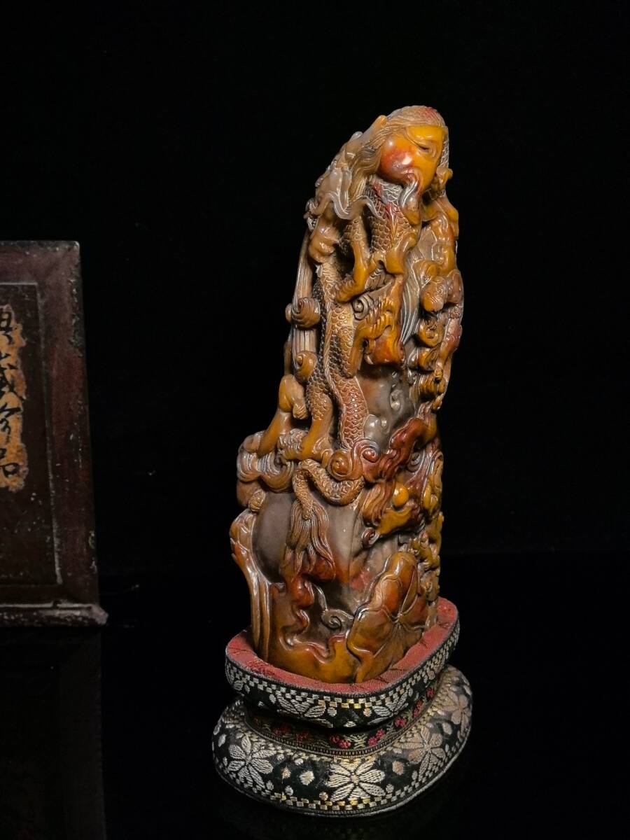 情:玉質は温潤で、沁色は自然で、刀功は老道、彫刻は生き生きとして、線は滑らかで、品相図。大清の有名な彫刻家【福広】の所蔵品の取材の上升寿山五色田黄石、色潤玉のような、机理の繊細な油潤、質の純粋な透き通って、工芸の確かな一流、祥竜、瑞獣の形態はそれぞれ異なり、覇気、生き生きとしています。