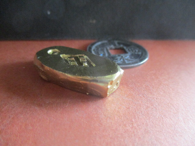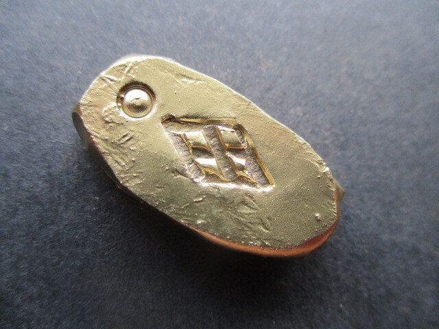 今回は委託品です。清和源氏の一流、河内源氏の一門、武田氏は、戦国期に最大の隆盛を極めた宗家甲斐武田氏が滅んだ後、安芸・若狭・京都の分派、上総・因幡・常陸の庶流が将来の武田幕府(武田政権)の樹立を期して軍用金の準備に励んでいたことが広く知られています。この品には武田家共通の家紋「四割菱(よつわりびし)」の他に常陸武田氏固有の刻印「単星」が見受けられます。や汚れなど状態についての詳細情報は画像でご確認ください。撮影の際の光の量によって実物と違った色に写ることがあります。タイトルに記載した量目は写真撮影の際に先方(委託者)宅で測定した値です。計量器の誤差は0.2g以内と聞いています。とりあえず本物と信じて購入したそうですが、入手以来一度も鑑定に出したことがなく、トラブル防止のためあえてレプリカとして出品させていただきます。また、金品位を記載した保証書が見当たらないとのことですので、メッキ品として出品させていただきます。開始価格は買い値の十分の一以下とさせていただきますので「レプリカ・メッキ品」を前提に無理のない範囲でご入札ください。高騰防止のため即決価格をご用意しました。自己紹介欄にオークション休業日を記載させていただいております。お手数とは存じますが、ご入札前にお読みいただければ幸いです。よろしくお願い申し上げます。