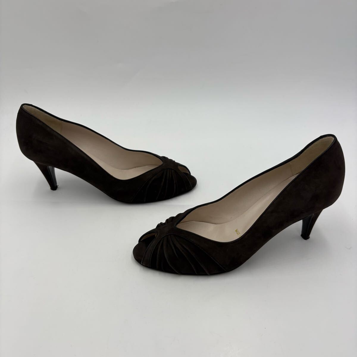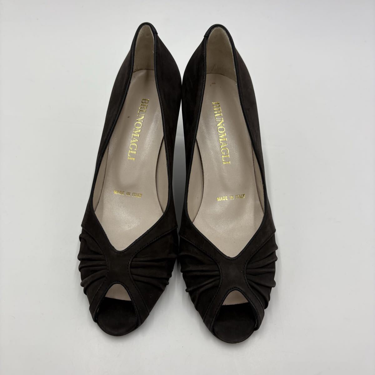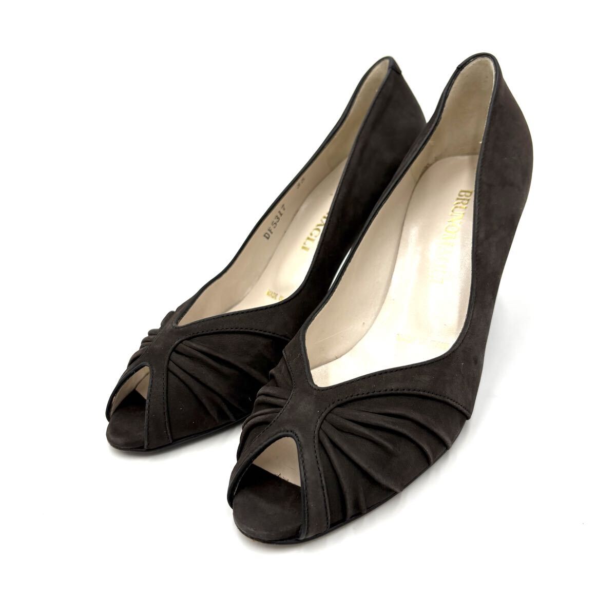 Q ■ イタリア製 '高級感溢れる' BRUNOMAGLI ブルーノマリ 本革 オープントゥ ヒール パンプス EU35 22.5cm レディース 婦人靴 シューズ