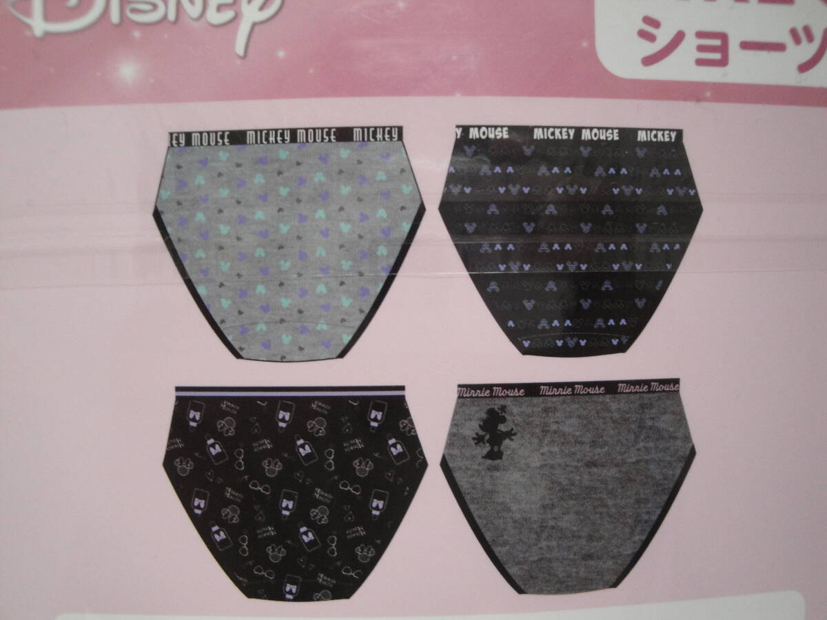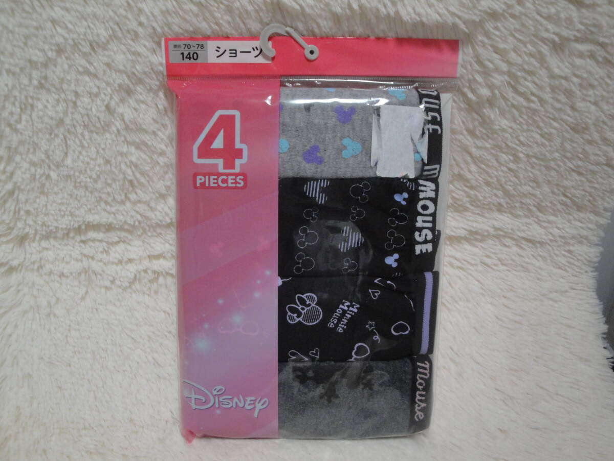 S新品140-661 4枚組ディズニー ジュニアショーツ 黒系2枚+薄グレー系1枚 すべて総柄+濃グレー系1枚ワンポイント