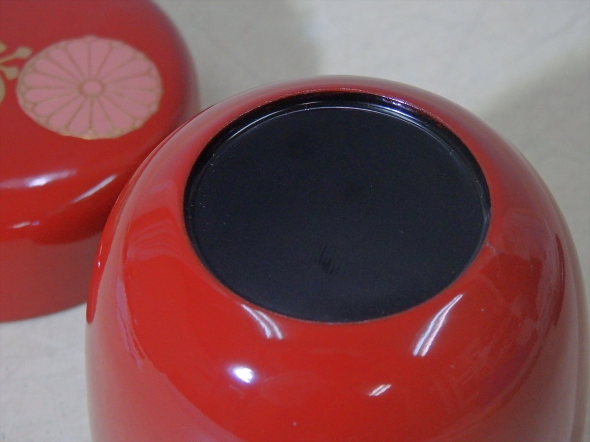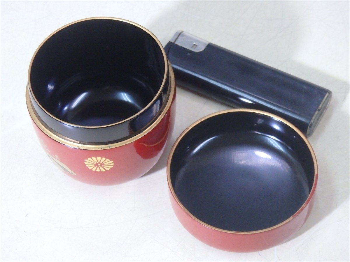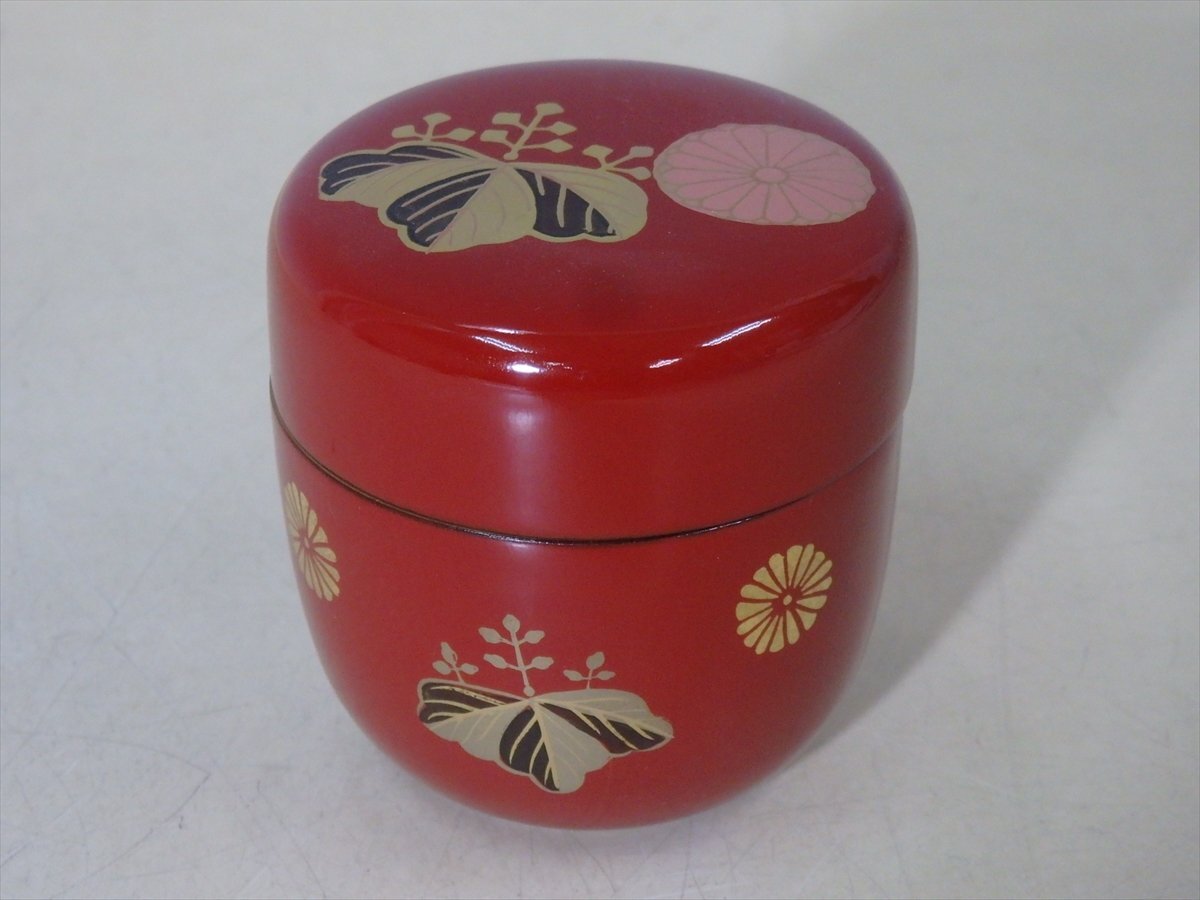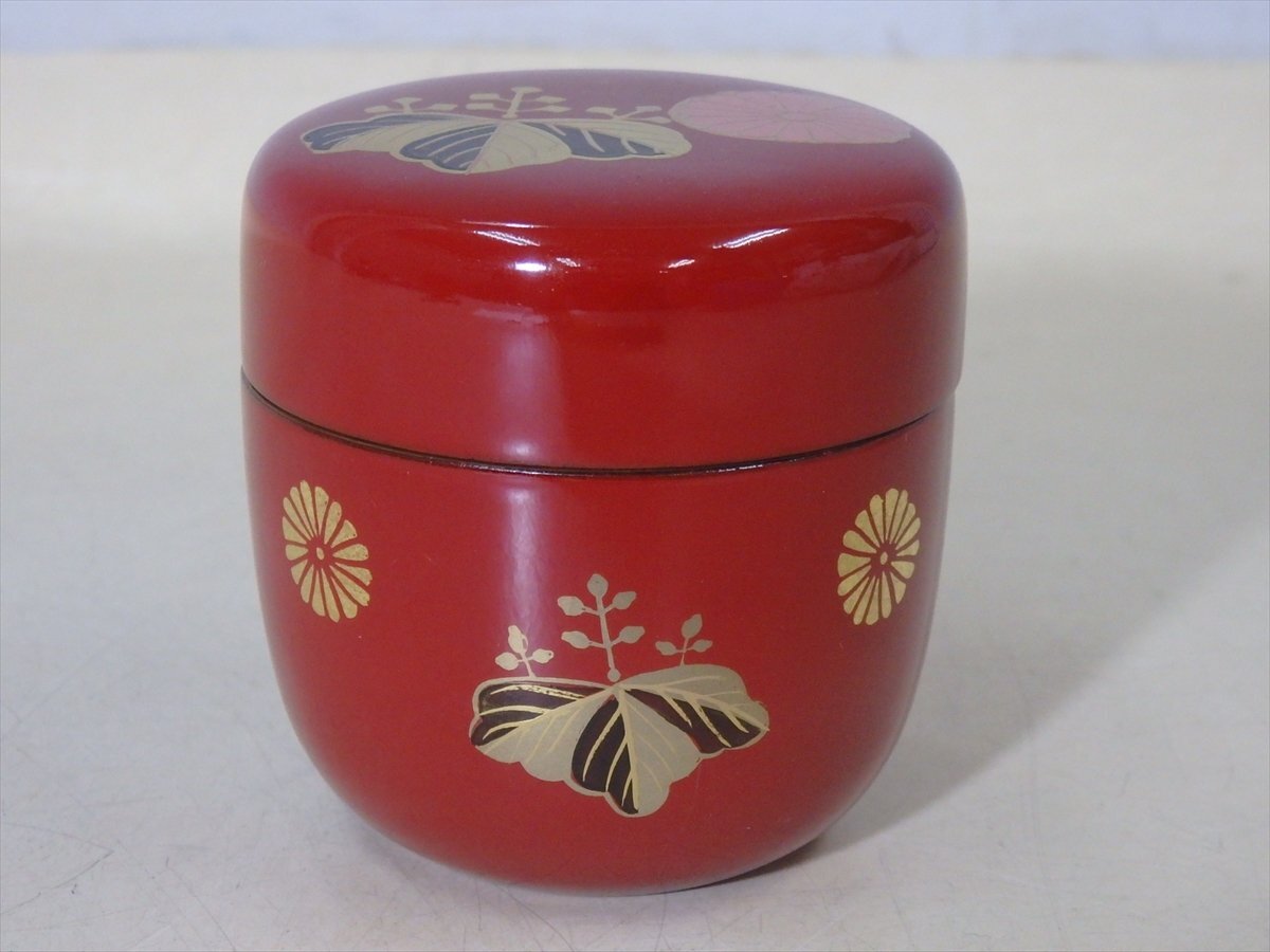 ★木製の高級品!【高台寺蒔絵 朱塗棗 内黒】菊桐文様 縁金 直径6.5cm 高さ6.8cm 茶道具 茶器