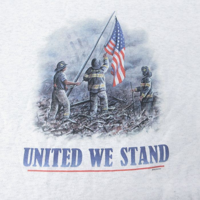 【商品名】 L★古着 長袖 スウェット メンズ 80年代 80s 消防士 クルーネック USA製 薄グレー 霜降り
