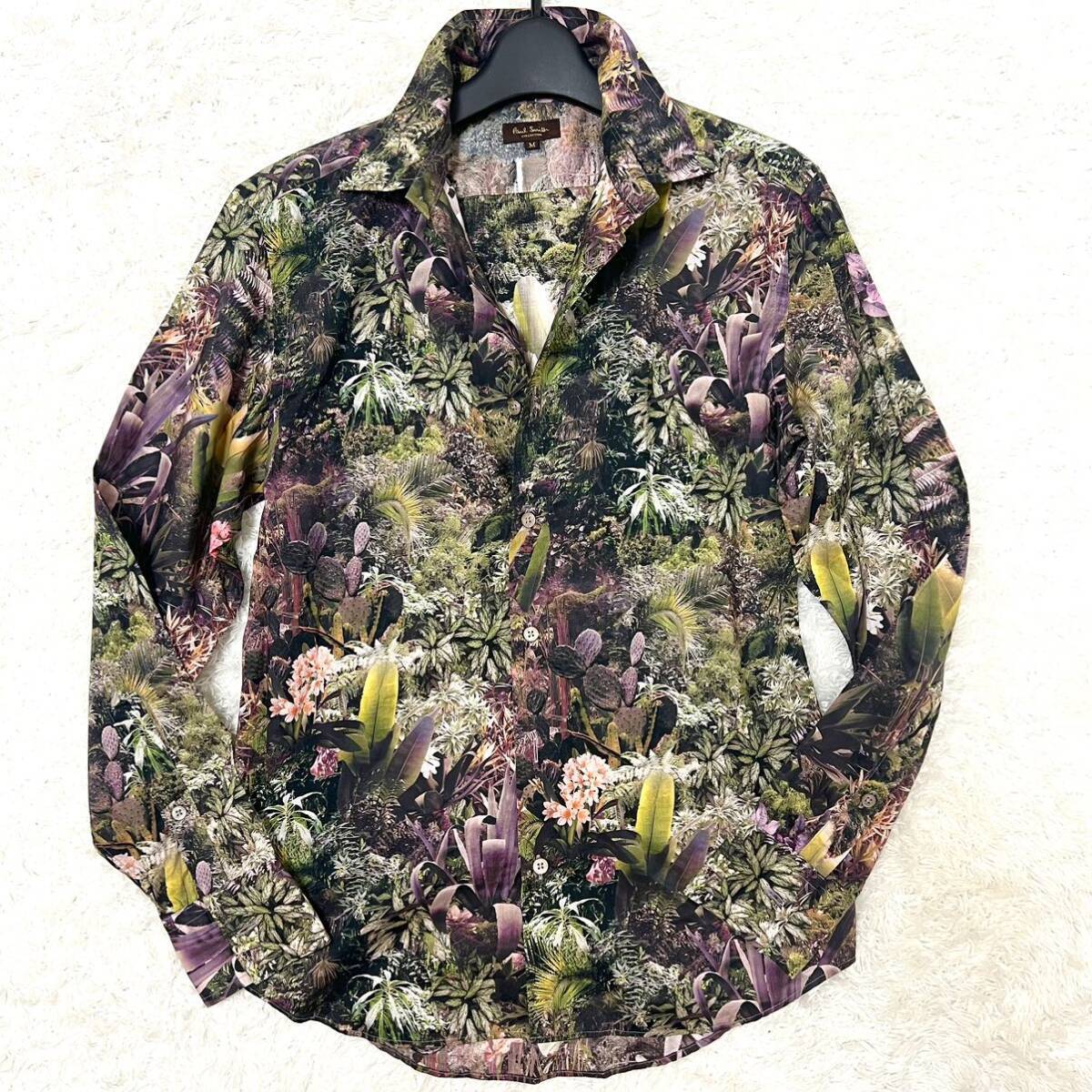 【超目立ち度 ポールスミス Paul Smith 総柄 ボタニカル 長袖シャツ Mサイズ 花柄 フラワー コットン マルチカラー 送料込み】