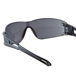 レンズはフレームとの角度を3段階に調節可能、UVカット率99%の優れた紫外線対策能力を備えています。目のまわりをおおきく包むデザインにより、広い視界を確保、目の保護を確実にし、レンズには破損しにくい「ポリカーボネイト」を使用しています。ノーズピースはレンズとの一体型。