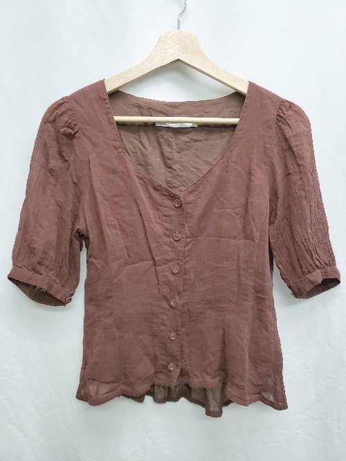 ◇ ⊂ MOUSSY マウジー 楊柳 半袖 シャツ ブラウス サイズF ブラウン レディース P