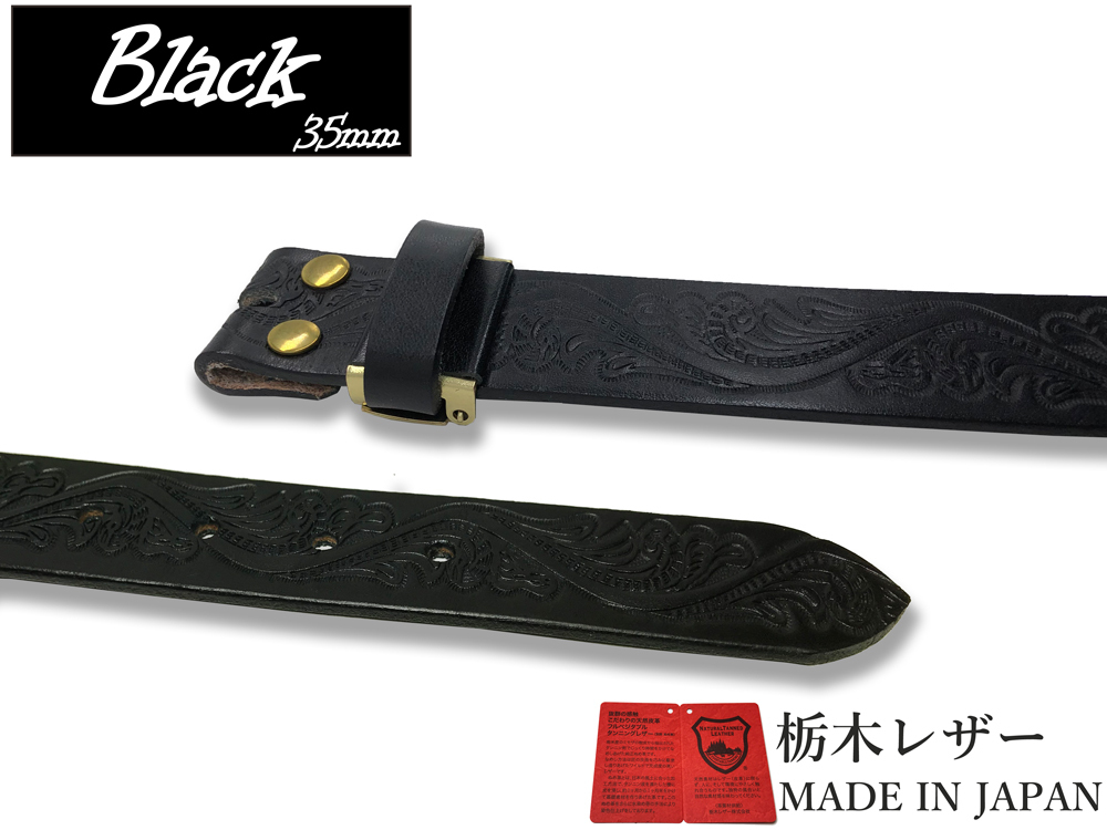 新品 栃木レザー カジュアルベルト Mサイズ メンズ クラフト 帯のみ 本革 交換用 取り換え 牛革 レザー 35mm 黒 ブラック 金ホック W050BKG