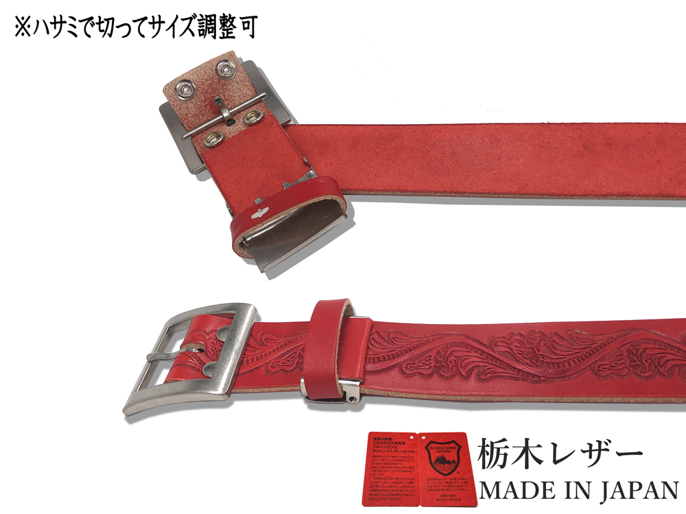 新品 栃木レザーベルト 本革 牛革 メンズ レディース 赤 レッド 国産 レザー クラフト 40mm カジュアル 日本製 W044RDS