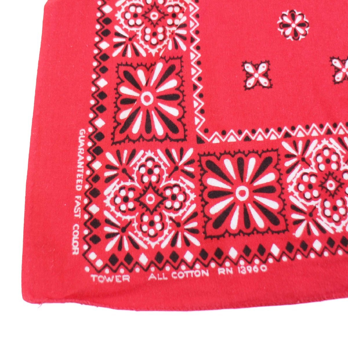 ★60s TOWER GUARANTEED FAST COLOR RN13960 コットン バンダナ 赤★80 ビンテージ ハンカチ パリスアクセサリーズ 花柄 フラワー 耳付き