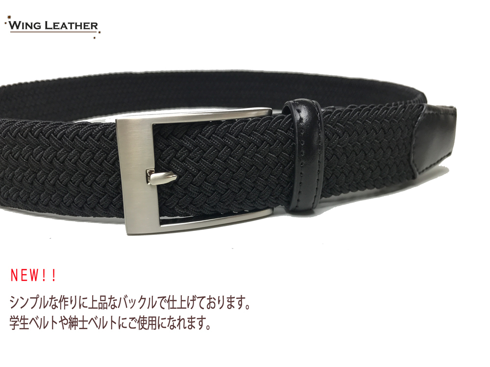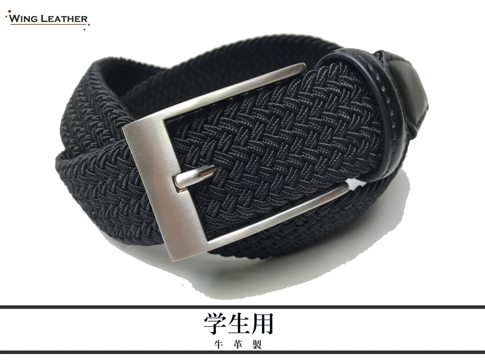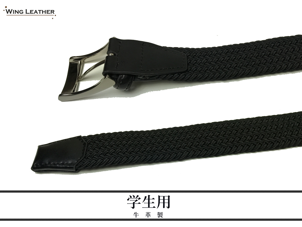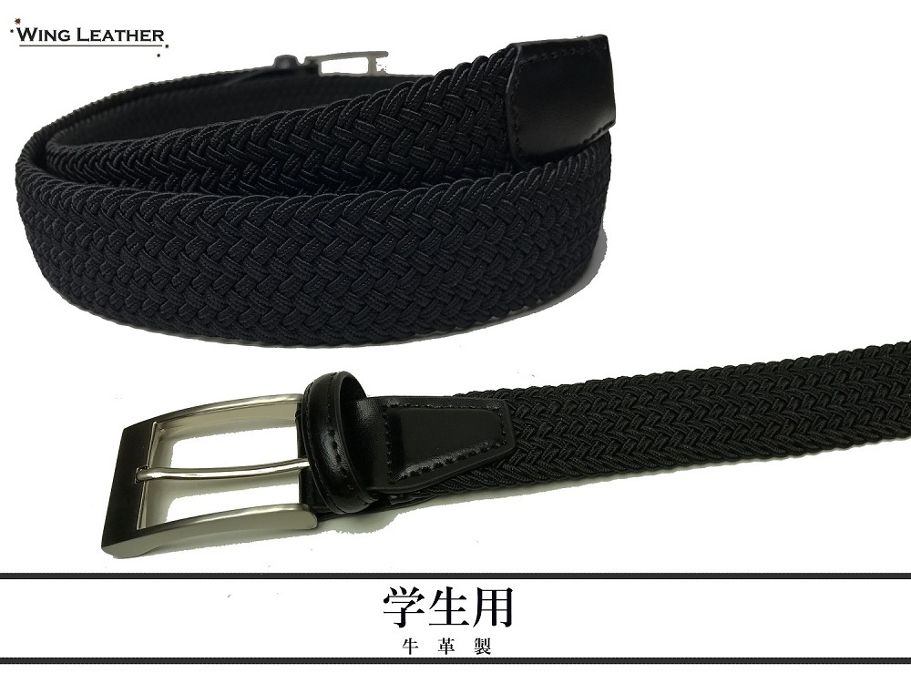 新品 レザー 学生ベルト ゴムメッシュ 紳士 本革 牛革 黒 メンズ スクール 通勤 シンプル 伸縮 固定 Sサイズ 中学生 GTP010BK