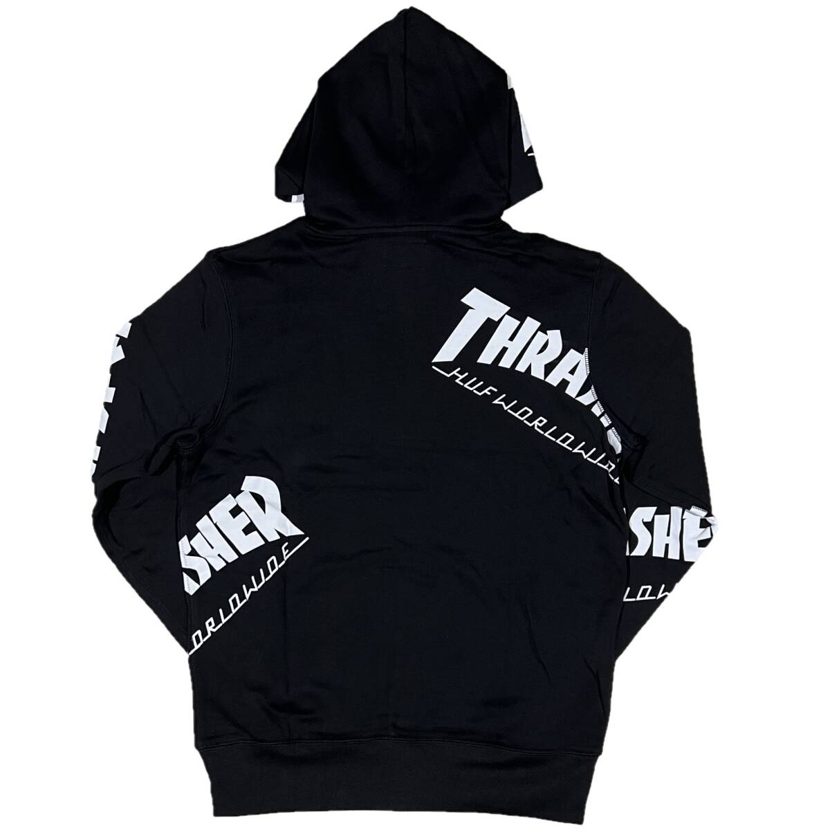 [並行輸入品] HUF THRASHER TDS ALLOVER HOOD ハフ スラッシャー プルオーバーパーカー (ブラック) (XL)