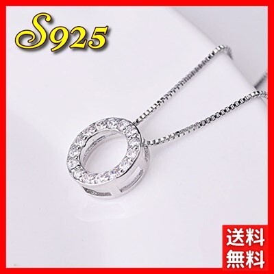 ネックレス S925 シルバー ボックス チェーン フープ レディース ラウンド サークル 輪 スターリングシルバー ラインストーン ジルコン ペンダント チョーカー 女性 アレルギー 対策 防止