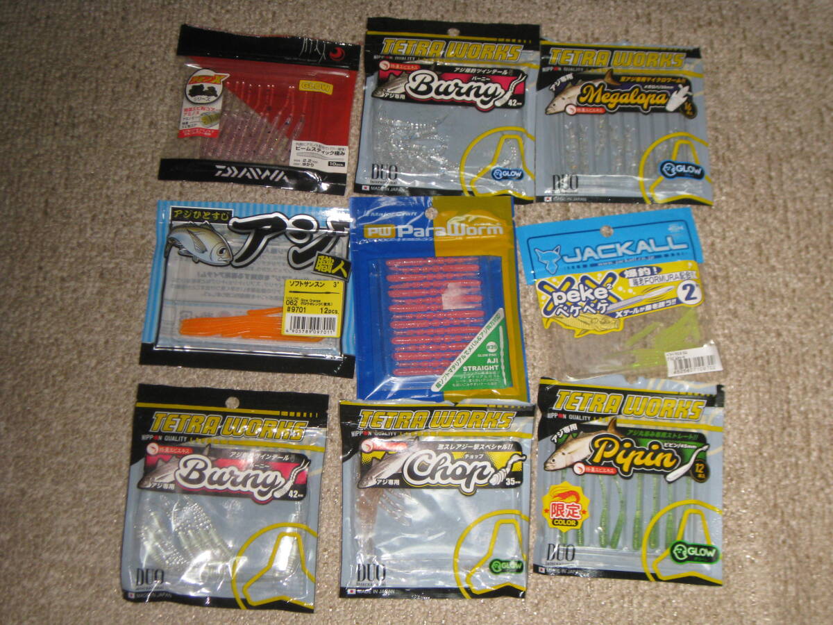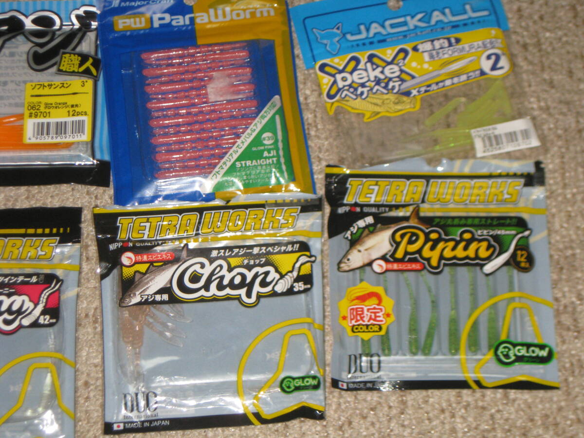 即決 ダイワ・DUO・ジャッカル・メジャークラフト・マルキューのアジング メバリング用ワーム9袋セット 月下美人 テトラワークス アジ職人
