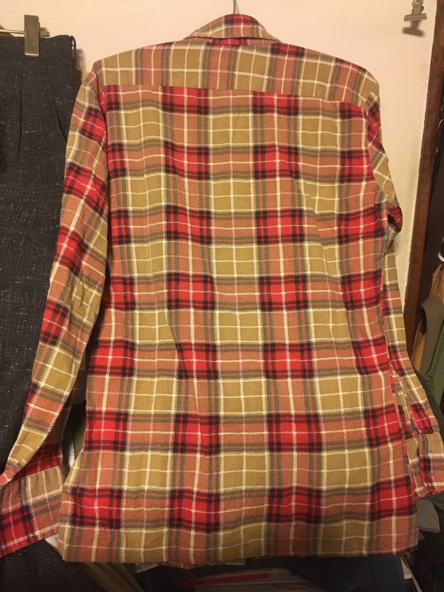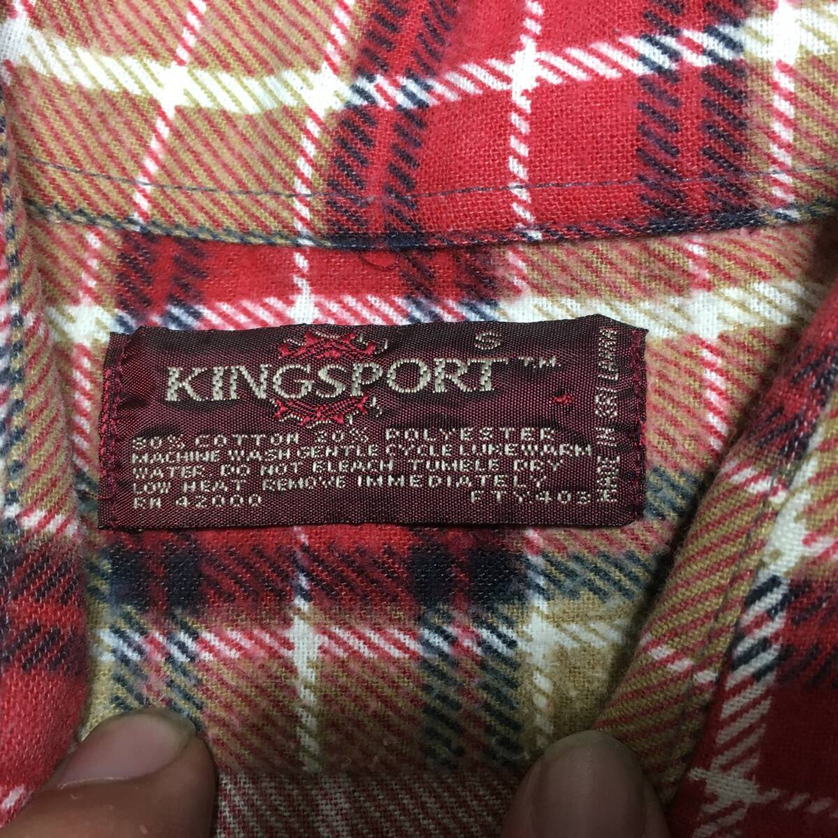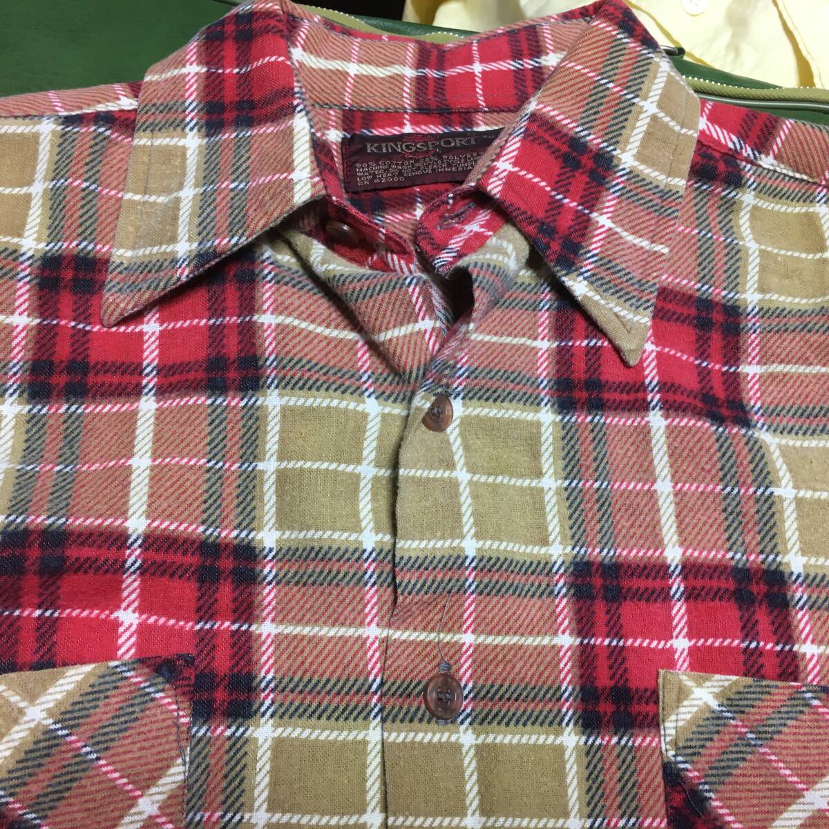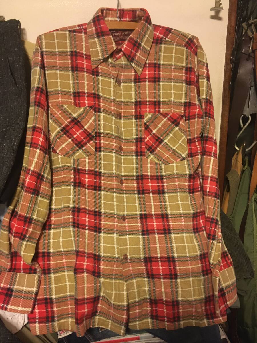2202ビンテージ70~80's KINGSPORTチェック プリント ネルシャツS OLDオールド フランネルUSED古着
