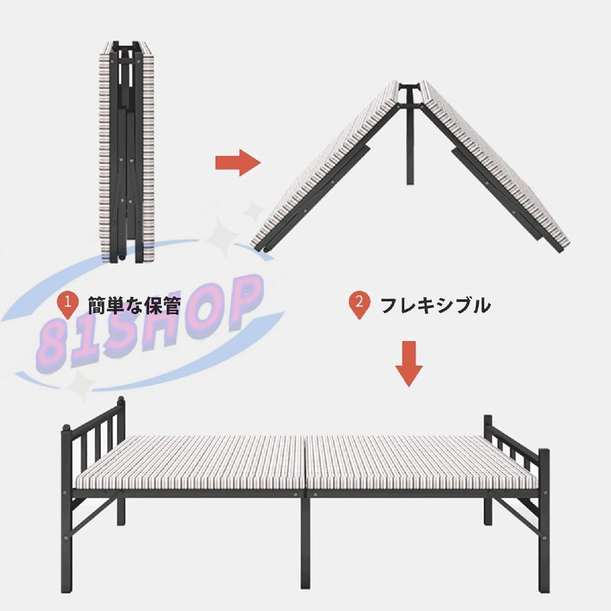 「81SHOP」折り畳み式ベッド 収納 頑丈 マットレス付き 耐久性 通気性 介護用ベッド 簡易ベッド 仮眠用 折りたたみベッド 一人暮ら