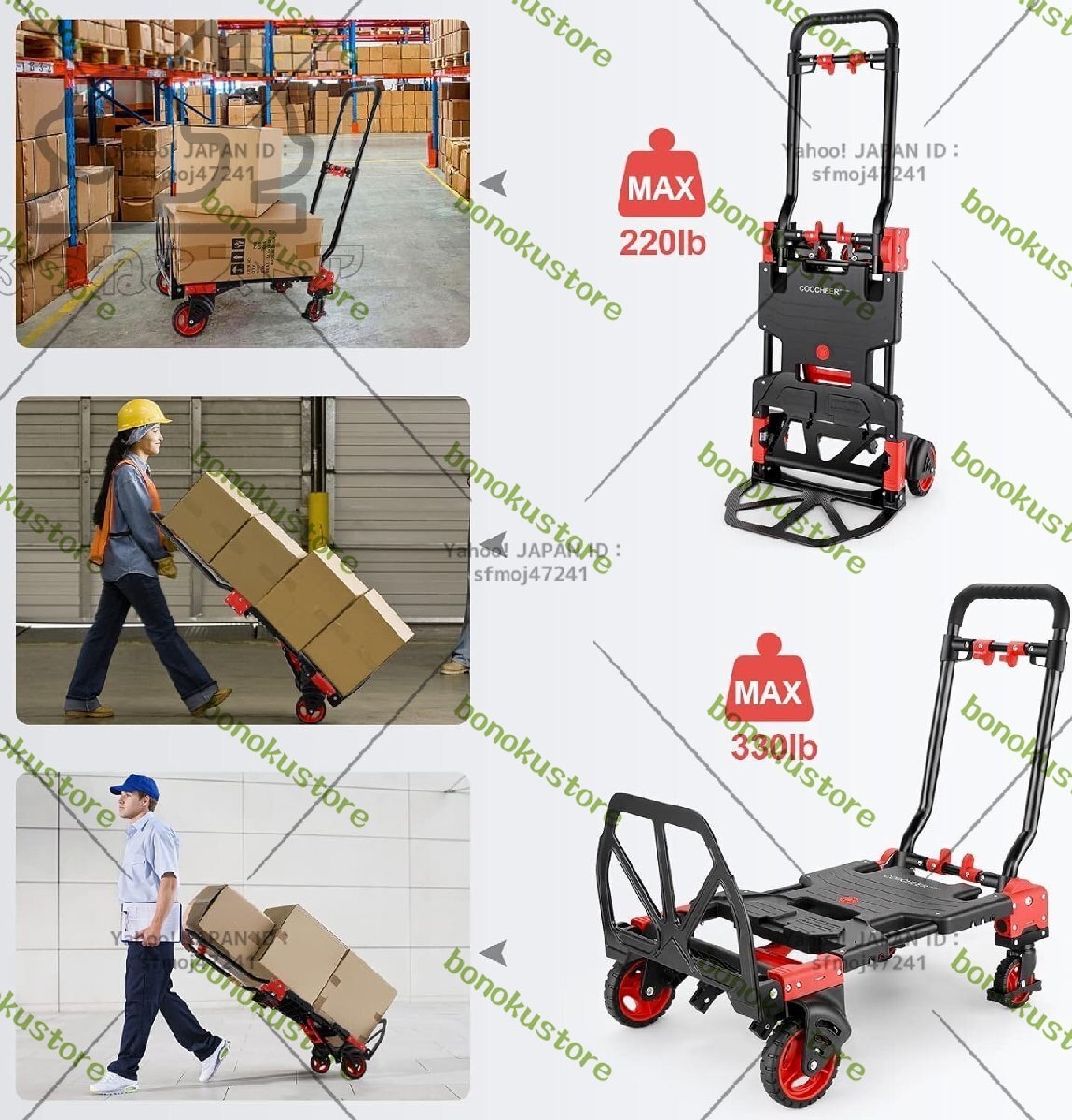2WAYフラットカート 折り畳み台車 軽量キャリーワゴン 静音ハンドトラック 固定ロープ付き 高さ調節 平台車 業務用運搬台車