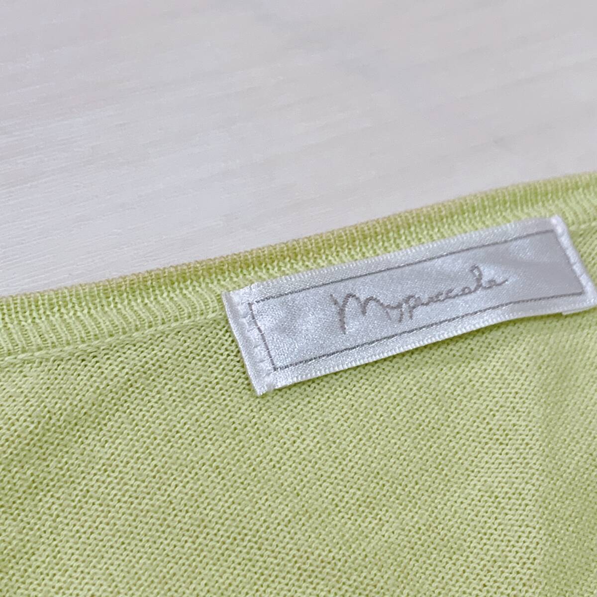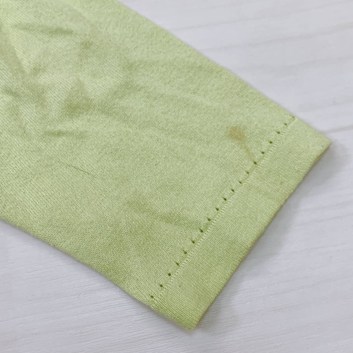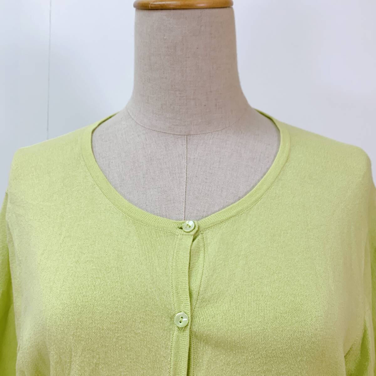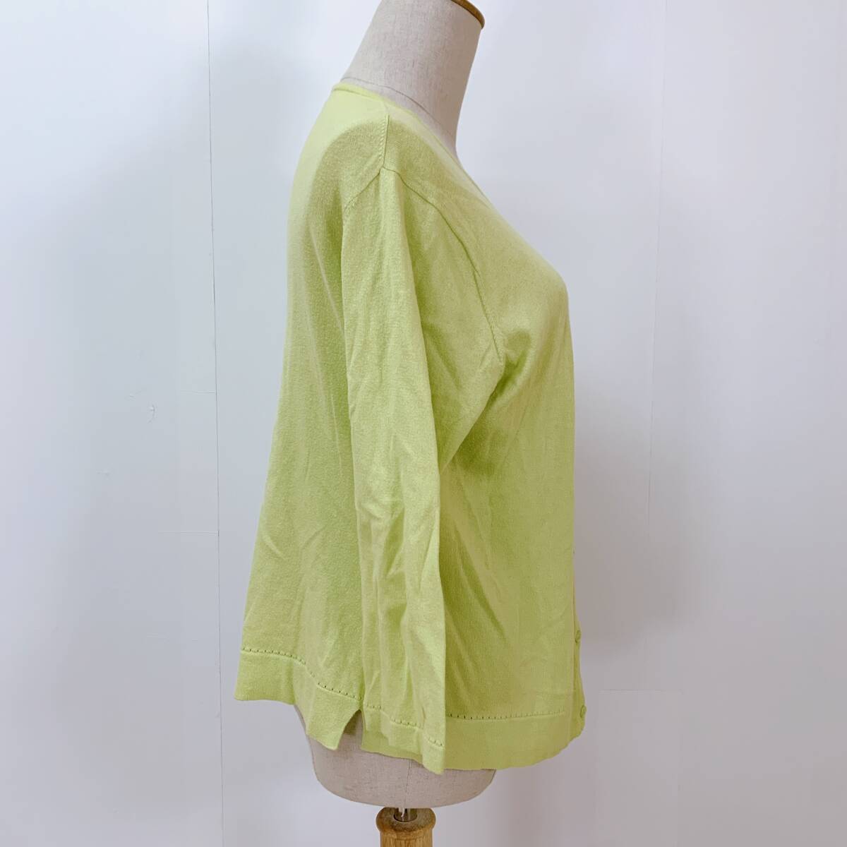 YH1617 レディース イタリア製素材使用 長袖 カーディガン サイドスリット 袖裾リブ 薄手 LLサイズ グリーン 黄緑 お洒落 万能 USED 古着