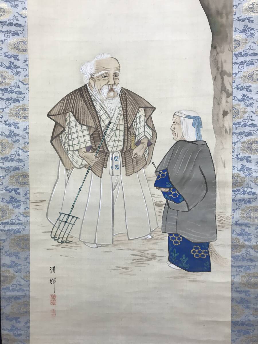 真作/横山清暉/高砂図/祝事掛/祝掛軸/正月掛軸/人物図/掛軸☆宝船☆AG-832