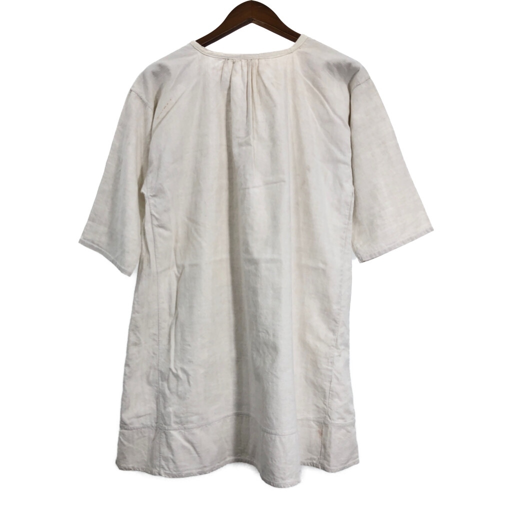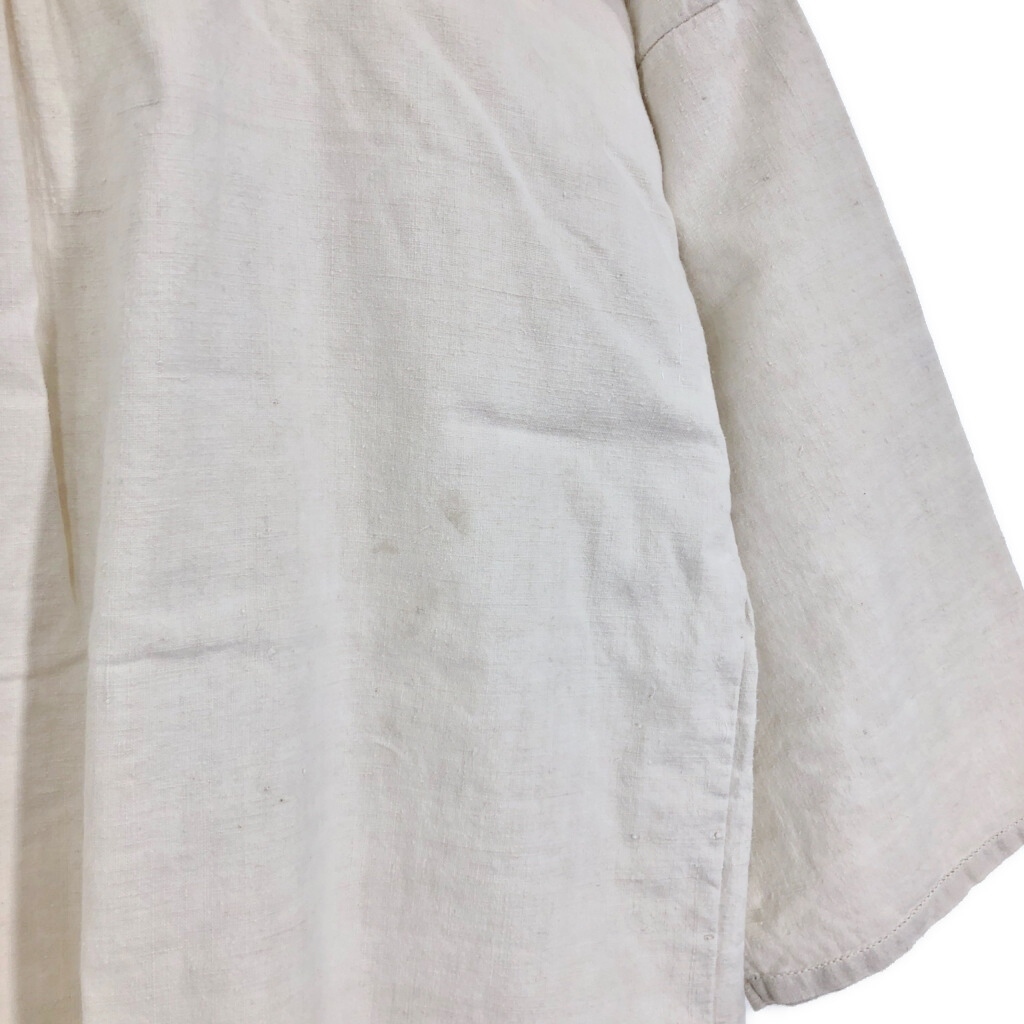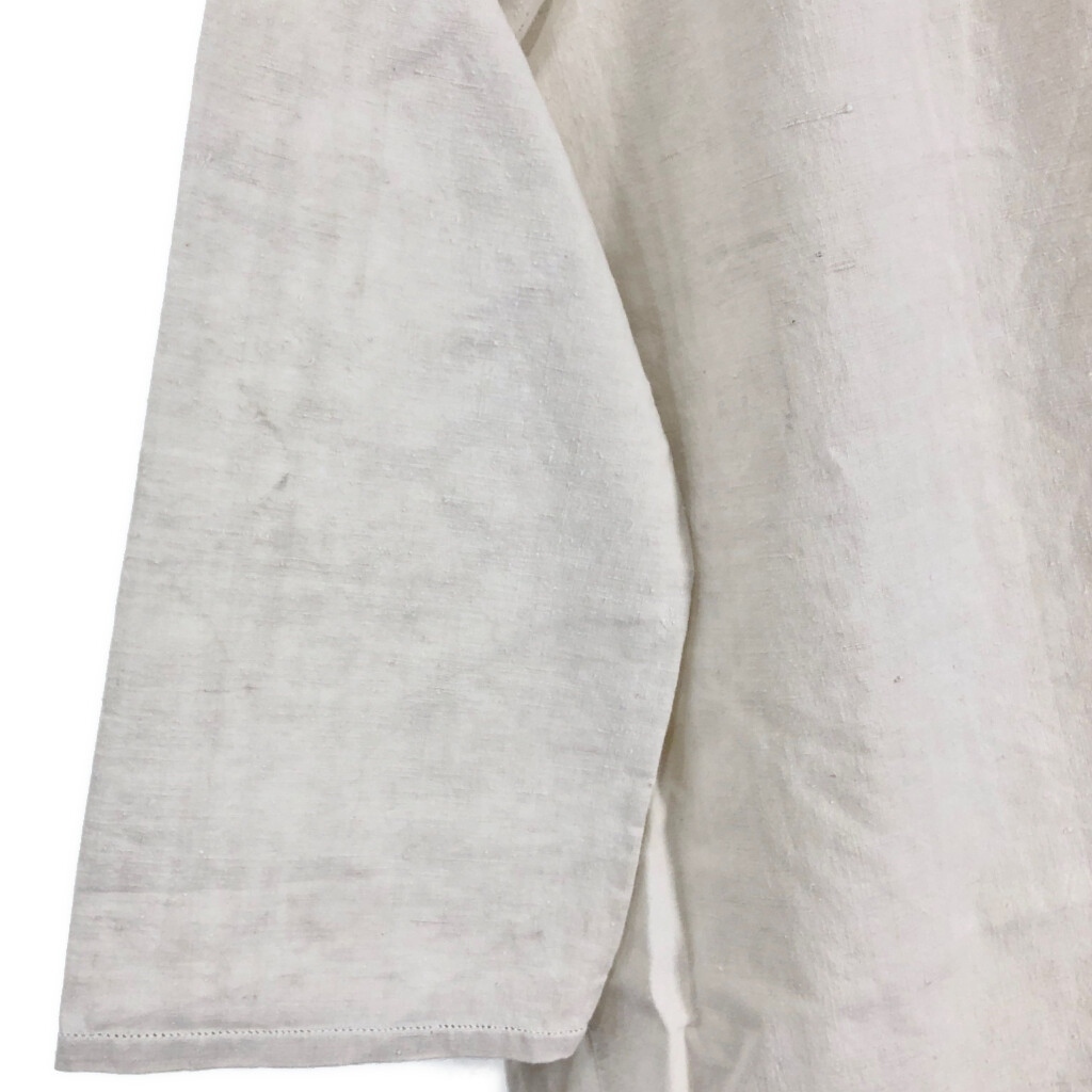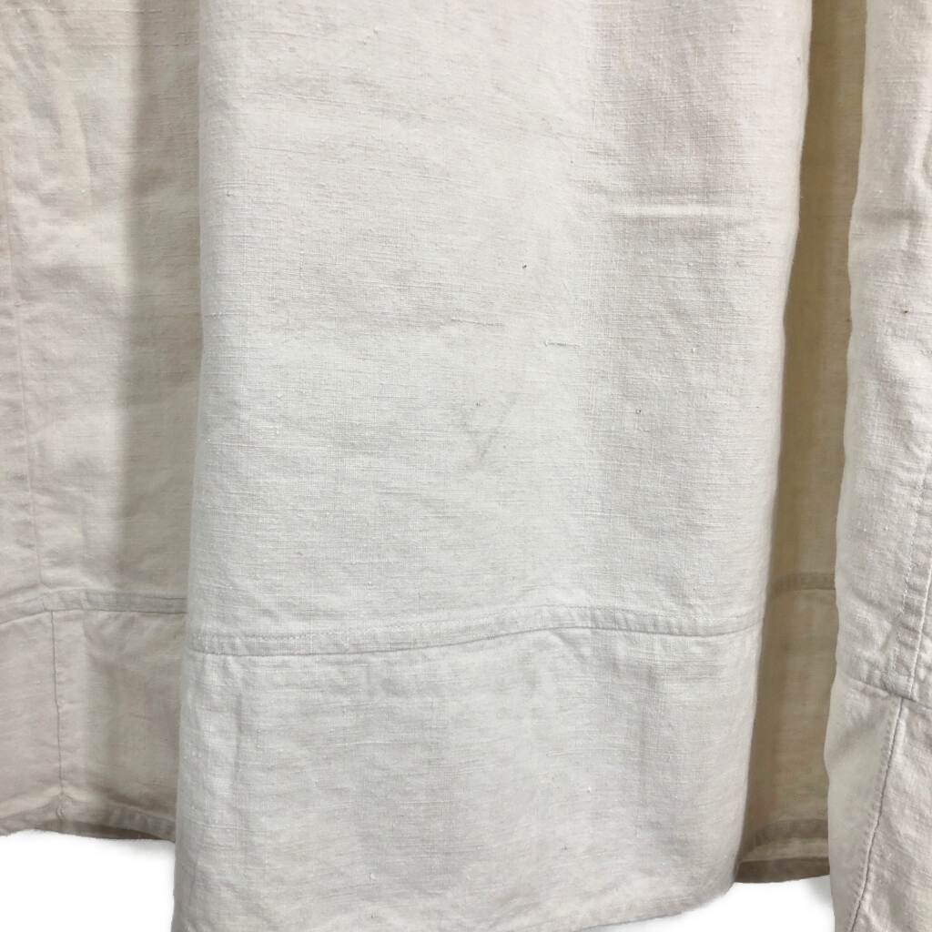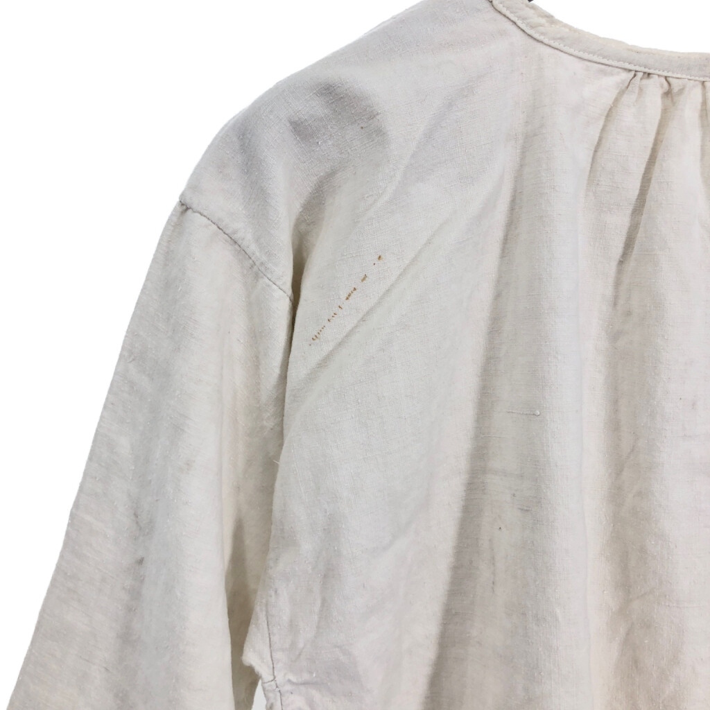 | [商品管理番号] R8194 [サイズ] XL相当 [実寸サイズ] 肩幅:約51cm 着丈:約88cm 身幅:約59cm 袖丈:約34cm [主な素材] 表地 : コットン [色] ホワイト [仕様] 30年代 ヴィンテージ、ユーロ フレンチリネン スモック [状態] 汚れ:肩、首元、袖、腹部、背中、腰 特記事項:タグ欠損 | |||