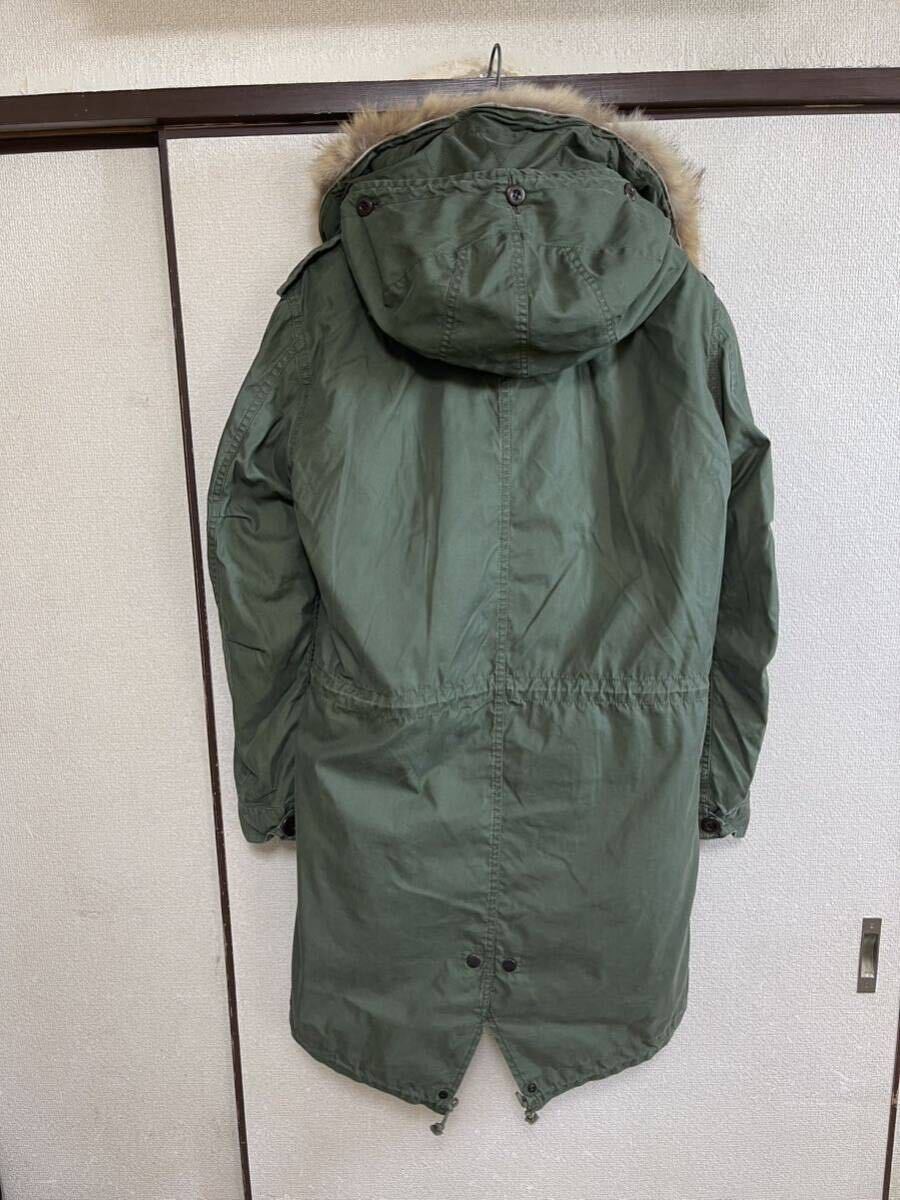 ライナーの内側に汚れがございますが内側なので着用の際にはわかりません。ジップ付近に避けられない特有の白いスレもややございますが全体的には良好な商品になります。