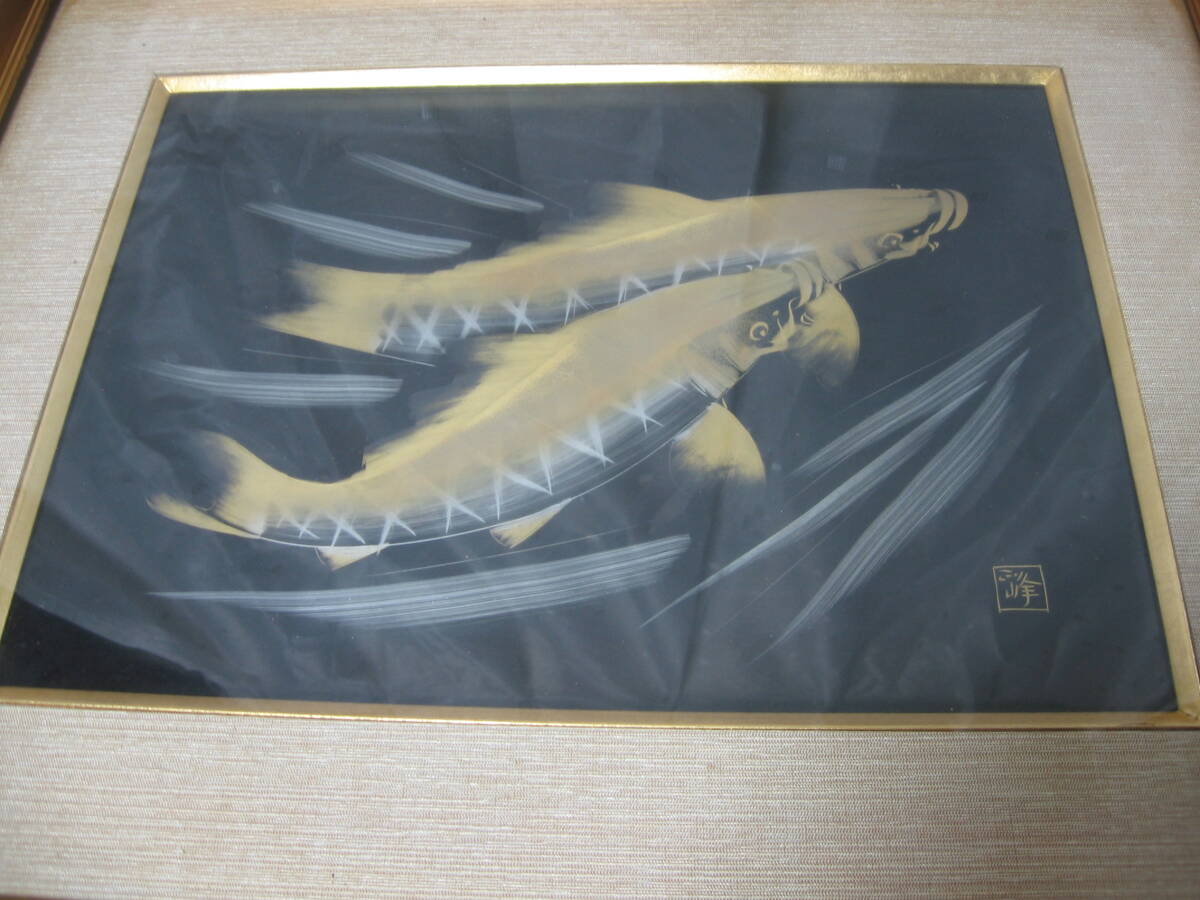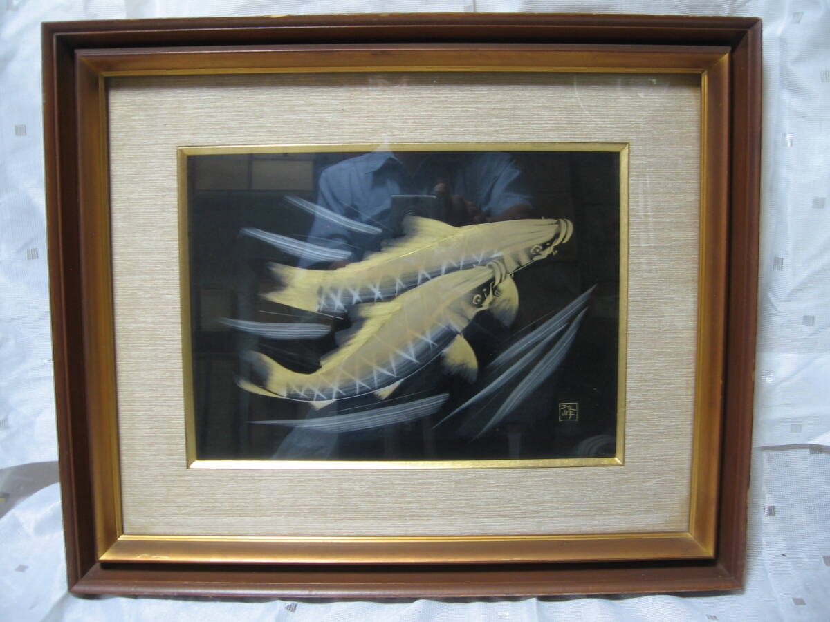 樽見西峰 作の漆絵(双鯉)を出品致します。額装が少しキズが見られます。。大丸美術部シール付き。額装(ガラス)寸法:横幅 約51.8㎝、縦幅 約42.7㎝、厚み 約5.4㎝。画像を良く覧の上、御入札をお願いします。ノークレーム、ノーリターンでよろしくお願いします。発送は、郵パック、着払いを予定しています。