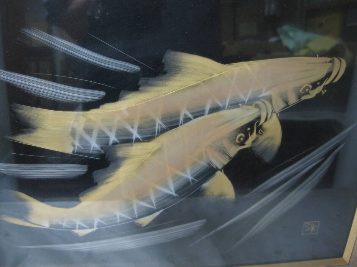 樽見西峰 作☆漆絵☆双鯉☆大丸美術部シール付き