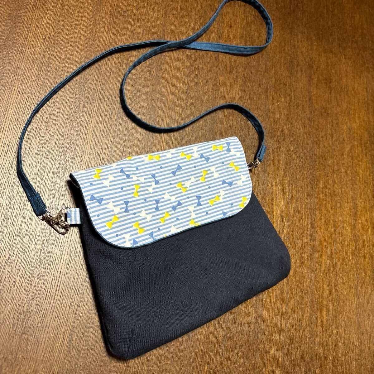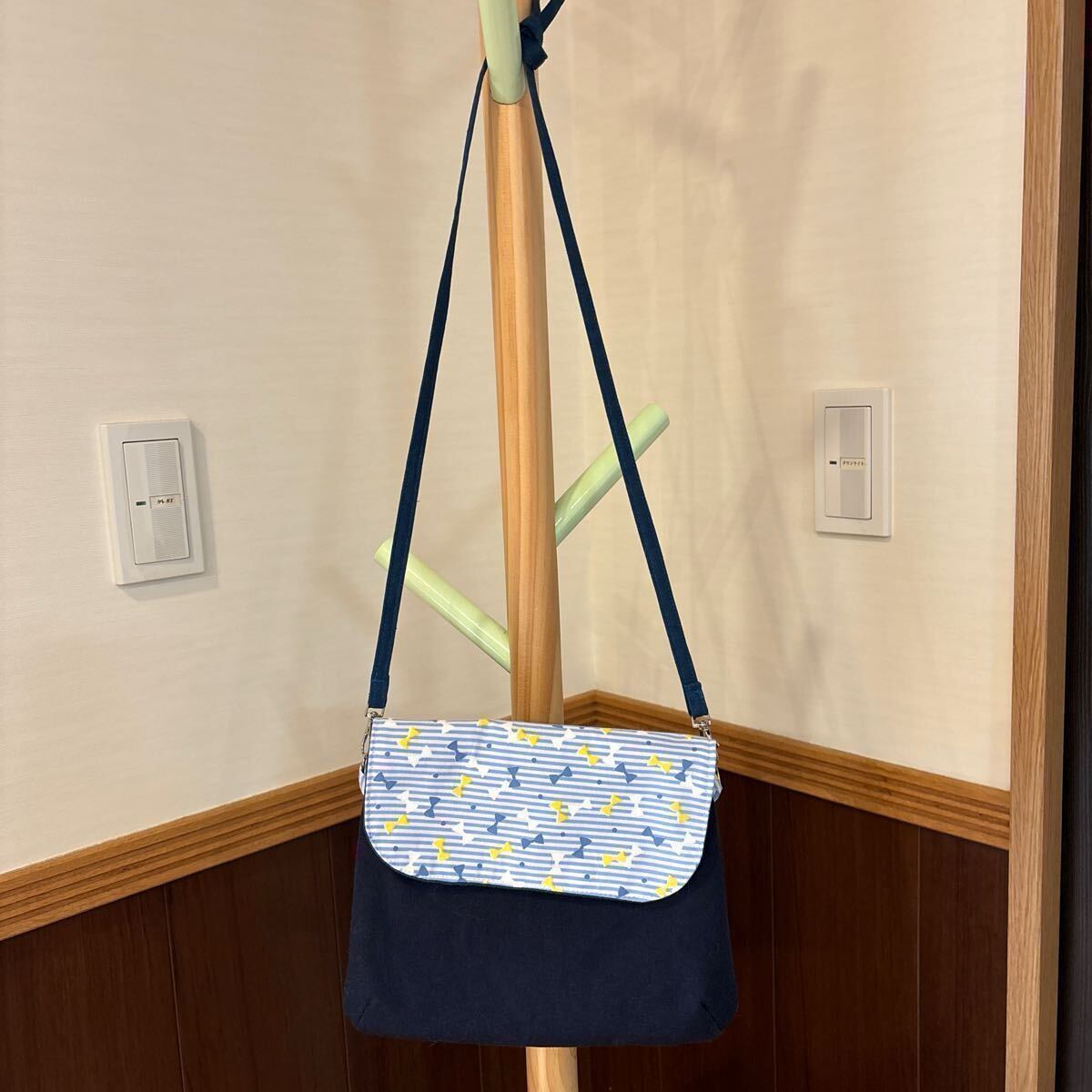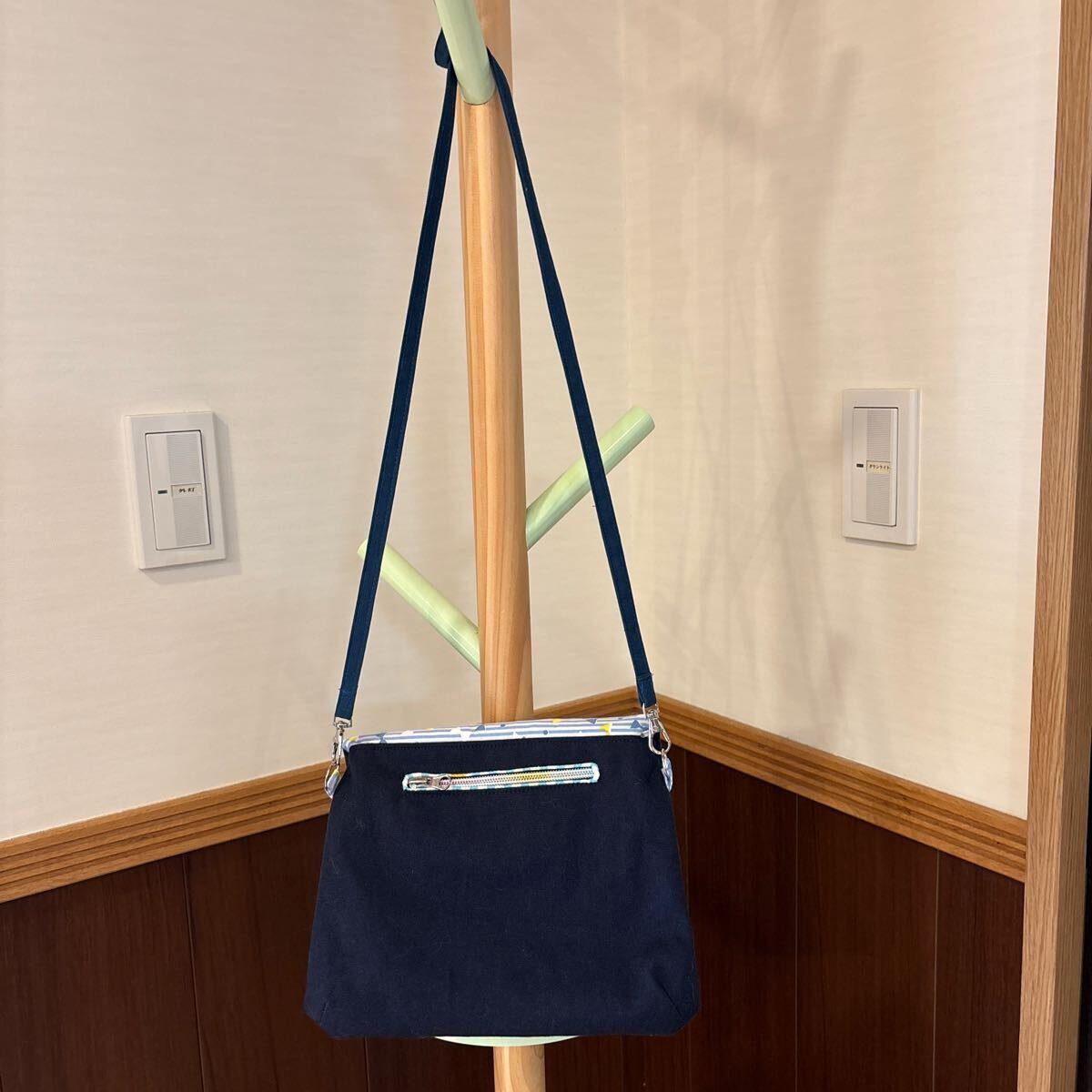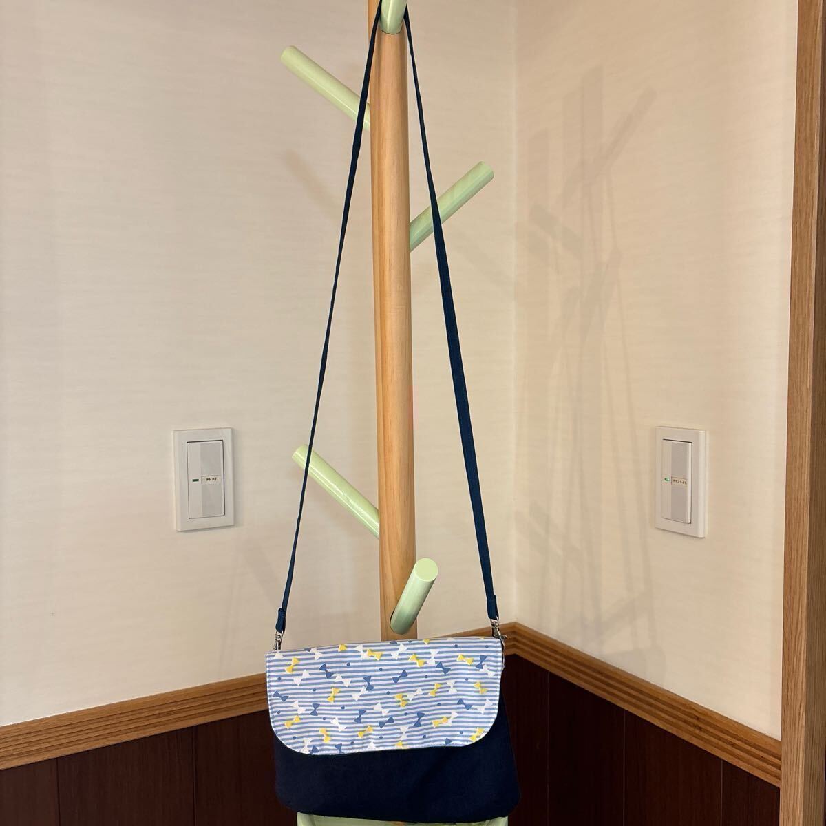 斜め掛け使用ですが、結んで短くして、肩掛けにしても可愛いです。(写真3、4)