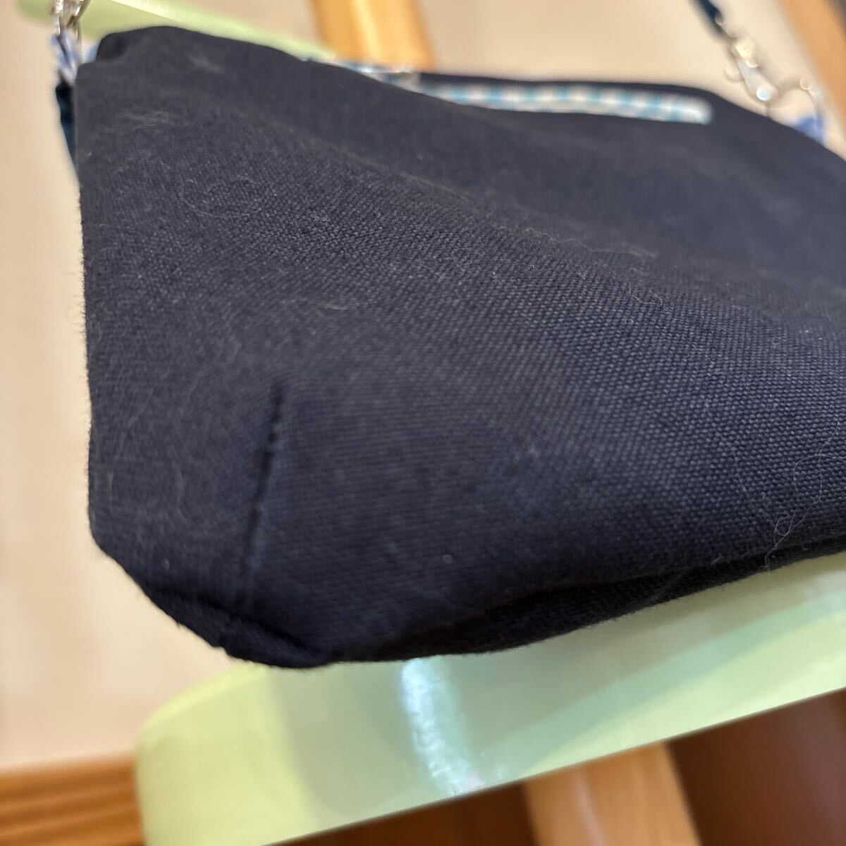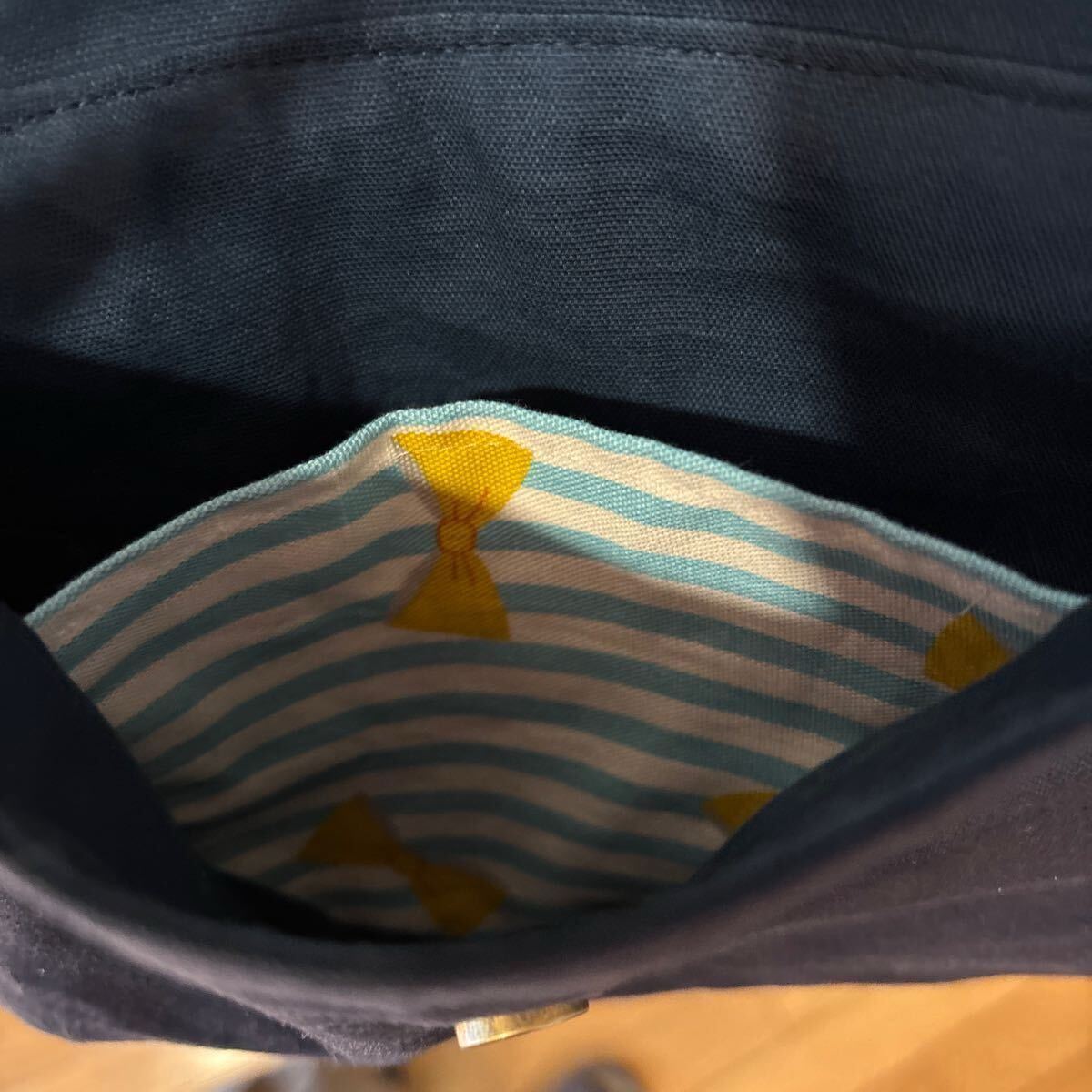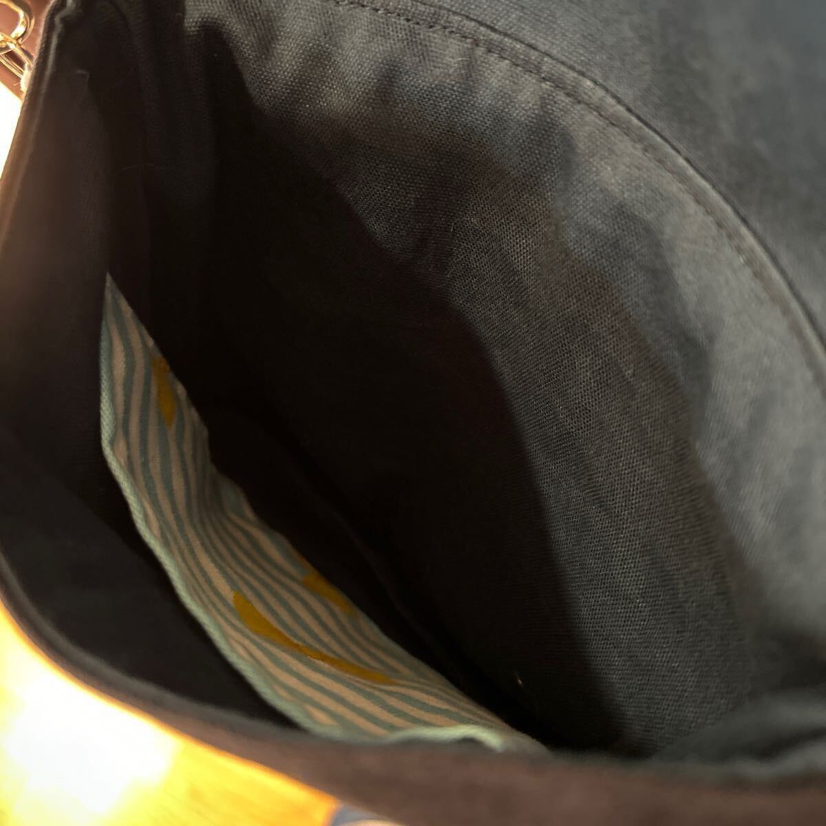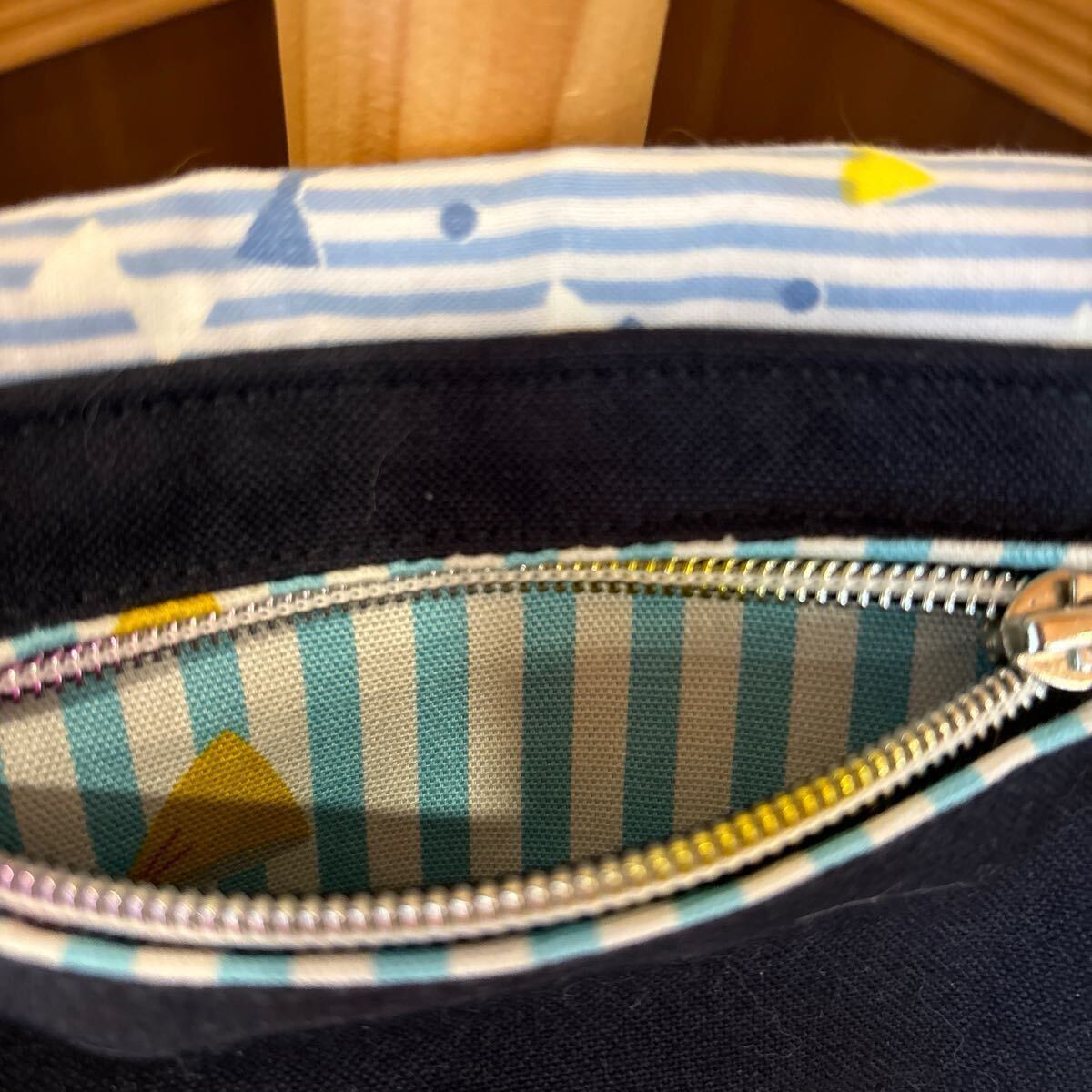 内ポケットとファスナー付き外ポケットがあり、ファスナー周りに見える柄が可愛いんです。