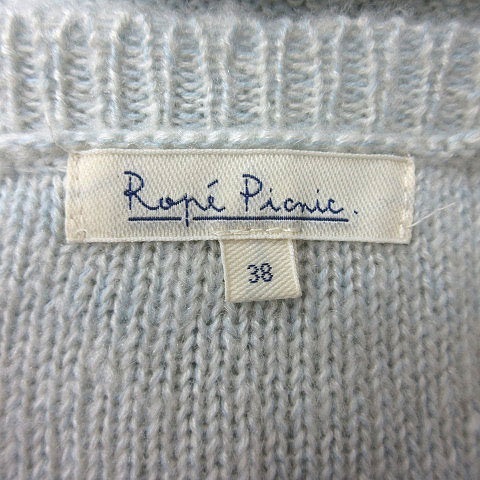 ロペピクニック ROPE Picnic ワンピース ニット ひざ丈 ケーブル 長袖 38 M 水色 ライトブルー 白 ホワイト /MS レディース