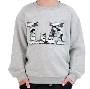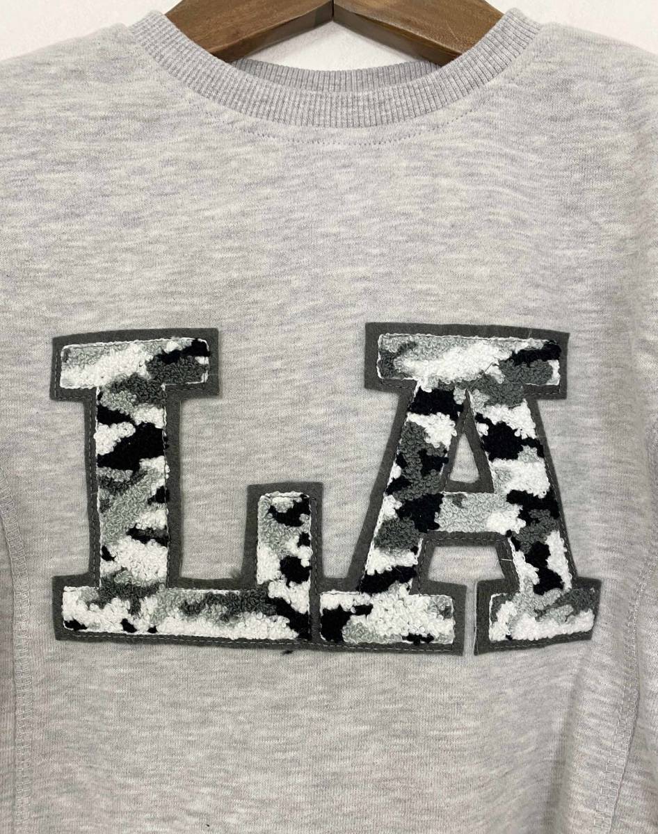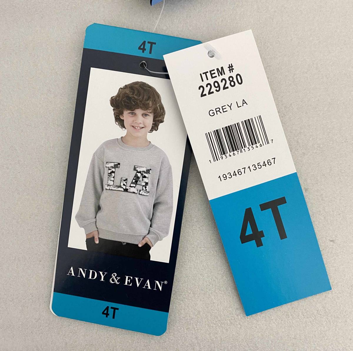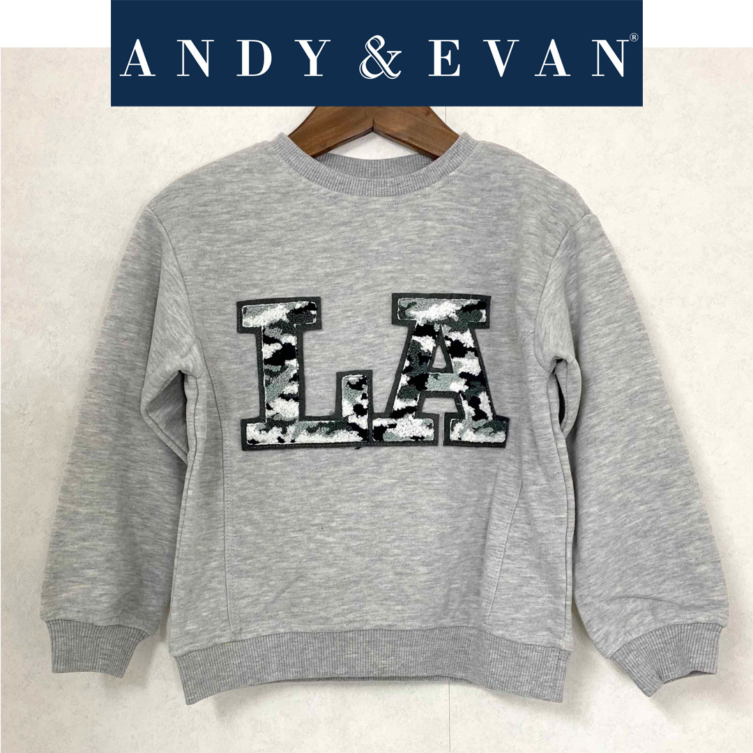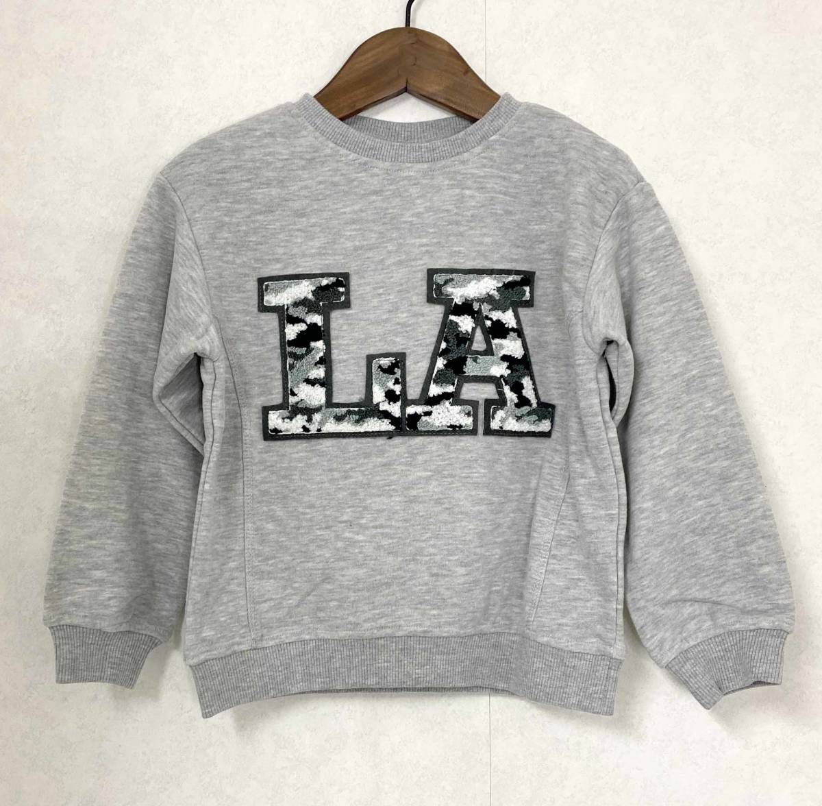 新品 110 ★ コストコ ANDY&EVAN キッズ トレーナー グレー LA 裏毛 4T スウェット シャツ ビッグワッペン 子供用 ボーイズ ガールズ