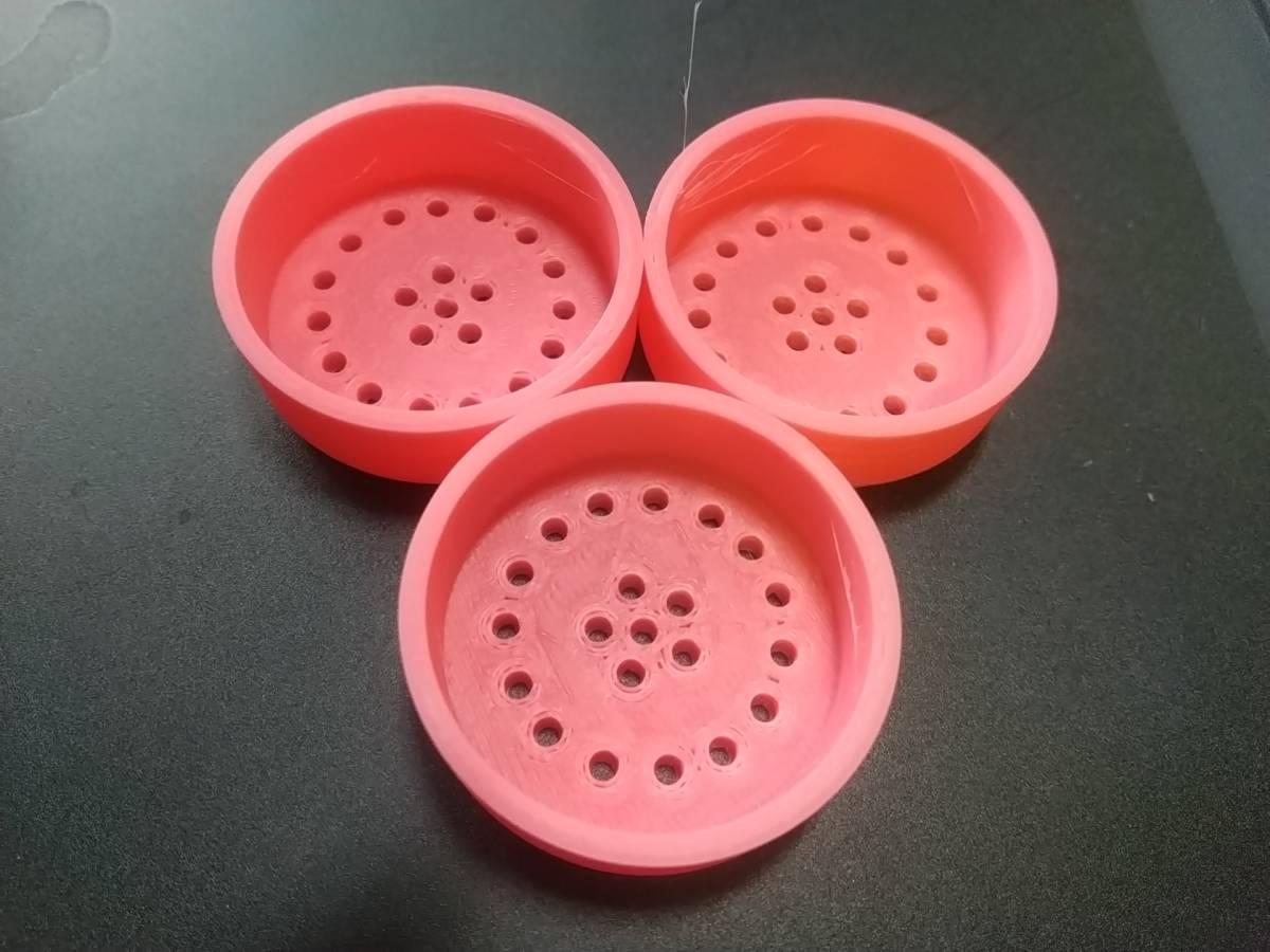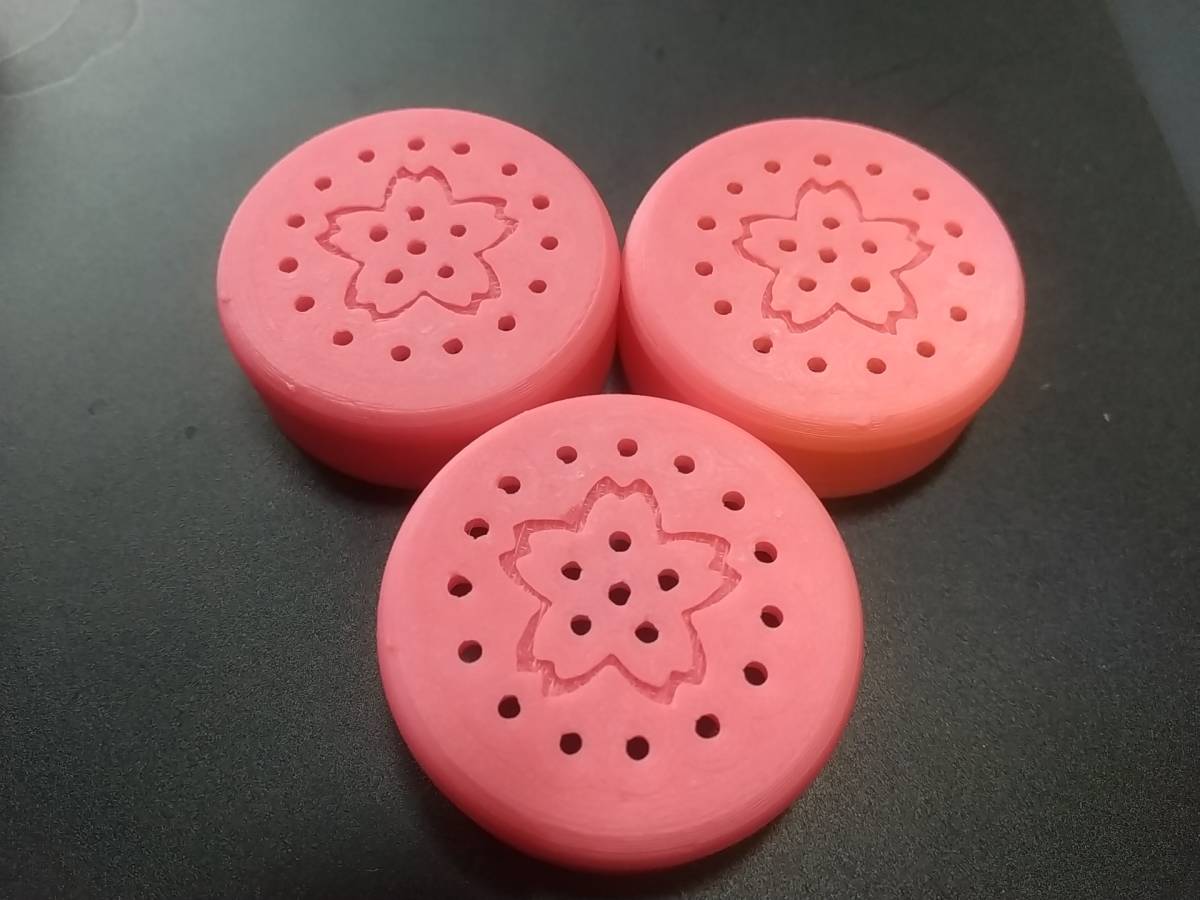 キャップ材質はABS樹脂です。穴は2mmで、3Dプリンターで作成しています。