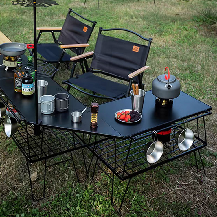 【9点セット】折り畳み式 メッシュ キャンプ テーブル 4個 + コーナーエクステンション4枚 + 鉄製天板付き キャンプ・アウトドア用