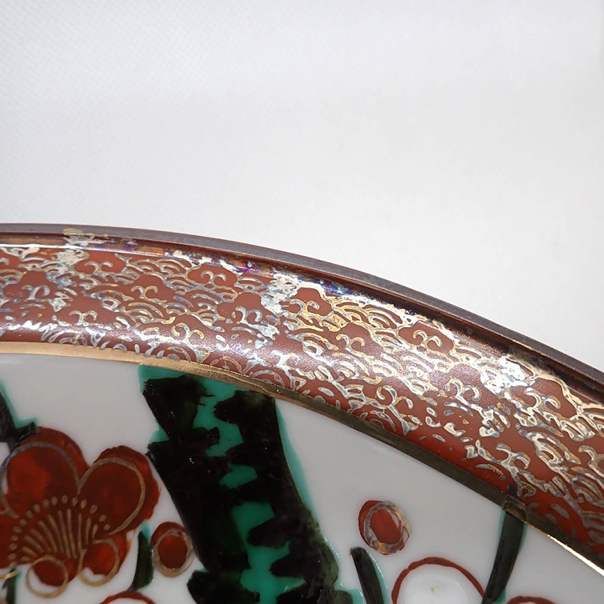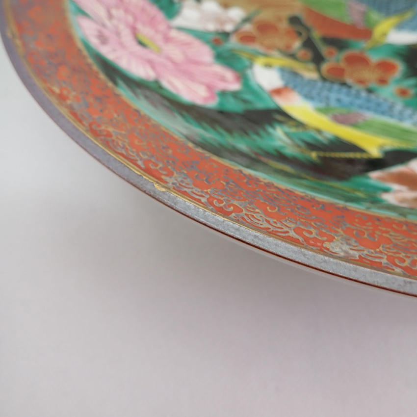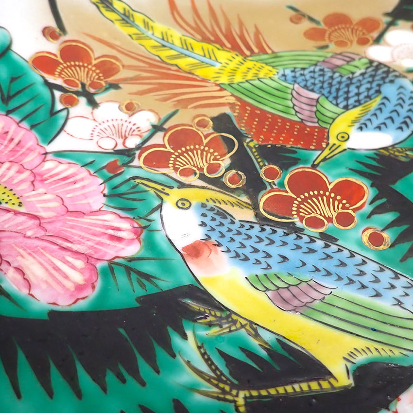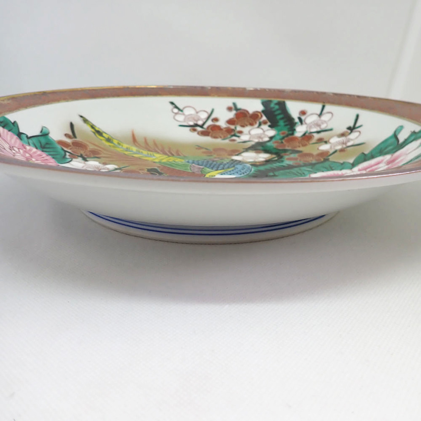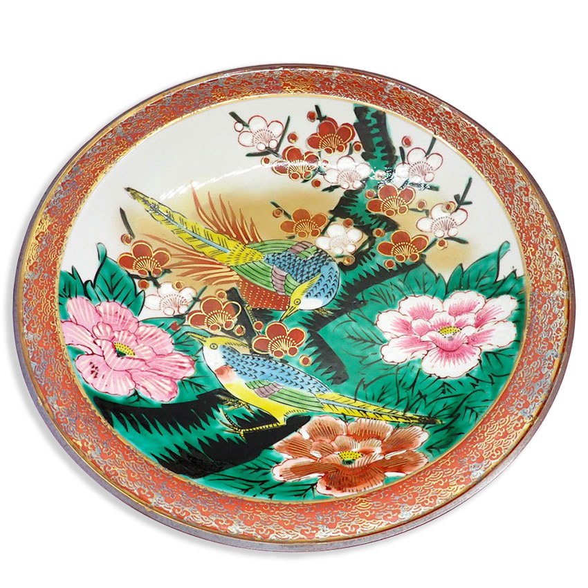 【中古】九谷焼/清峰 花鳥 梅牡丹 骨董品 飾り皿[b12-3]