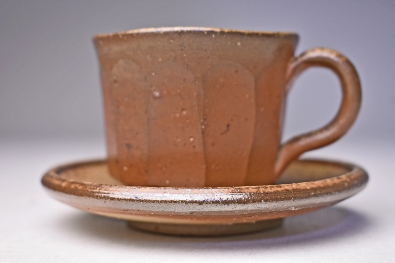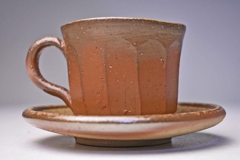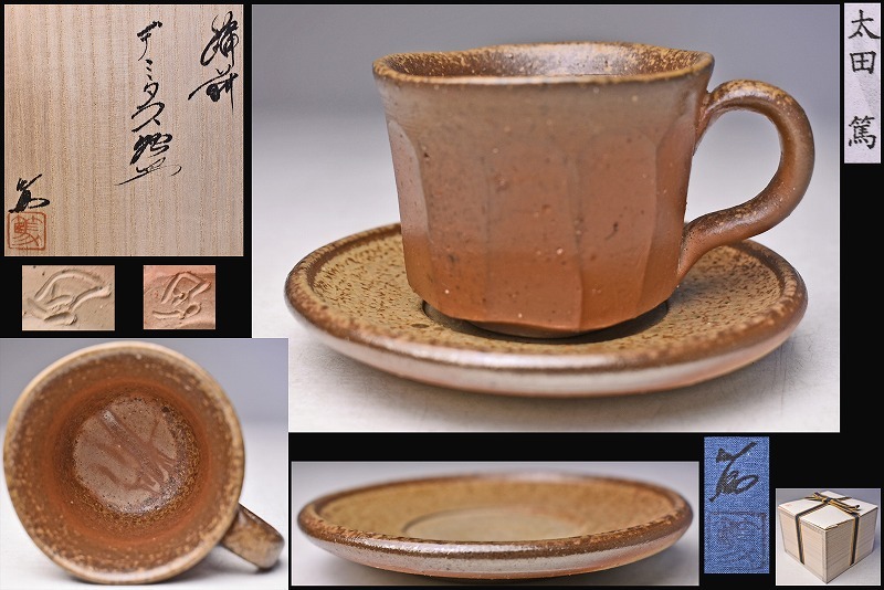 サイズは 92mmx72mmx高さ56mm 。 ソーサーは 114mmx高さ19mm です。 備前の太田篤 氏の 作品です。 2024年製です。 宅配便80サイズにて発送します。 他にも多数出品してます。同梱対応いたします。