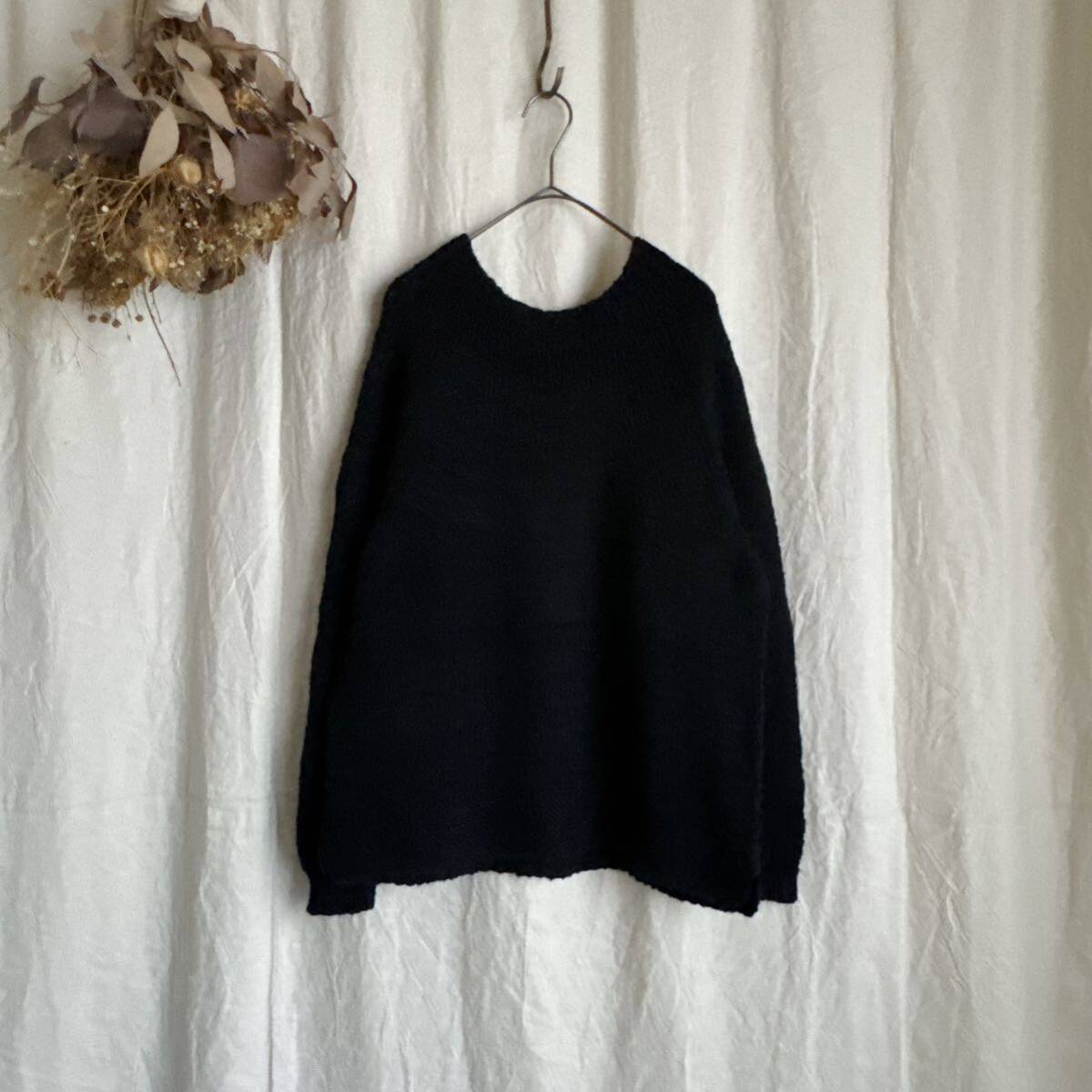 風合い豊かなガラ紡の綿糸を使いざっくりと編み上げたセーター。